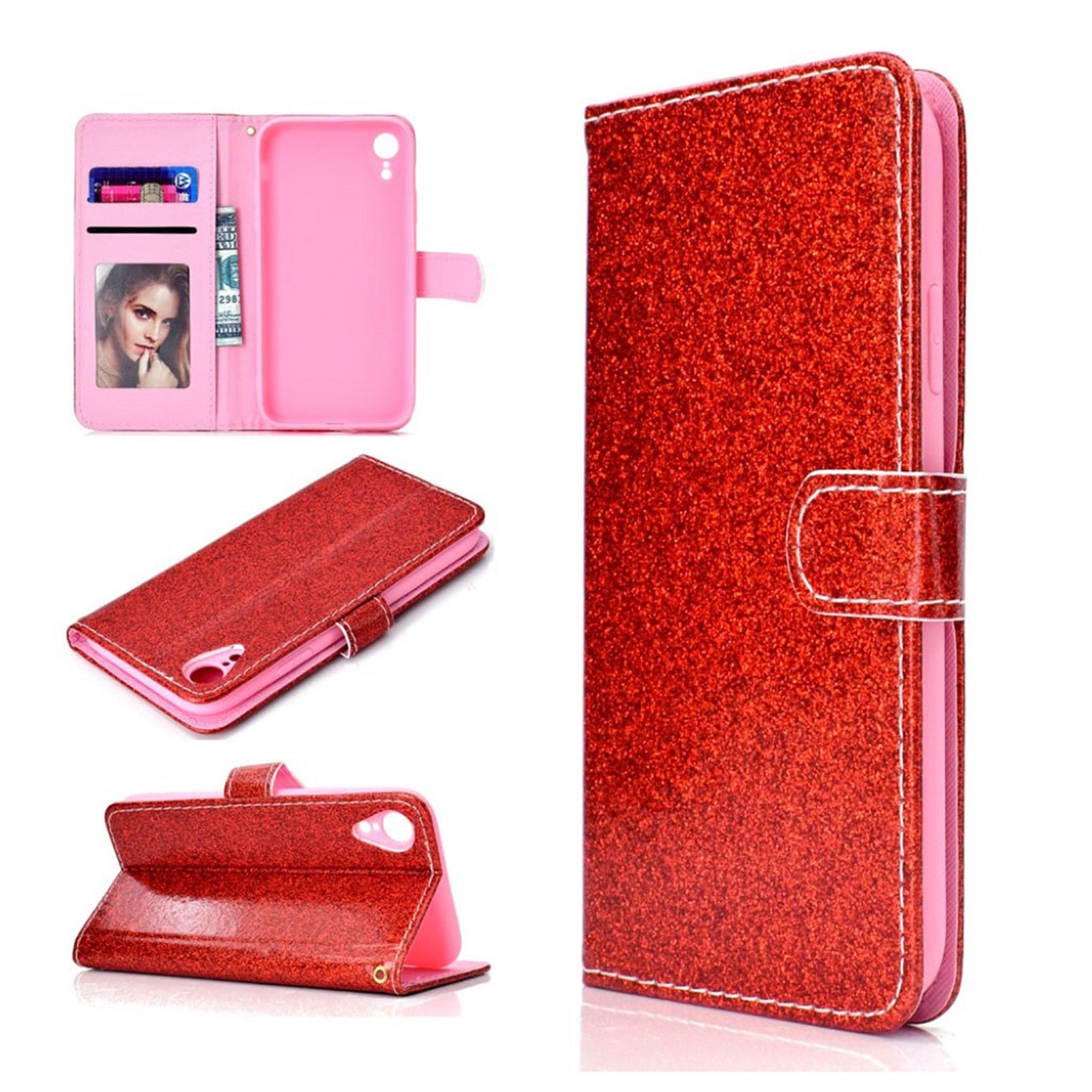 Funda abatible de piel en polvo flash para iPhone Xr - Rojo