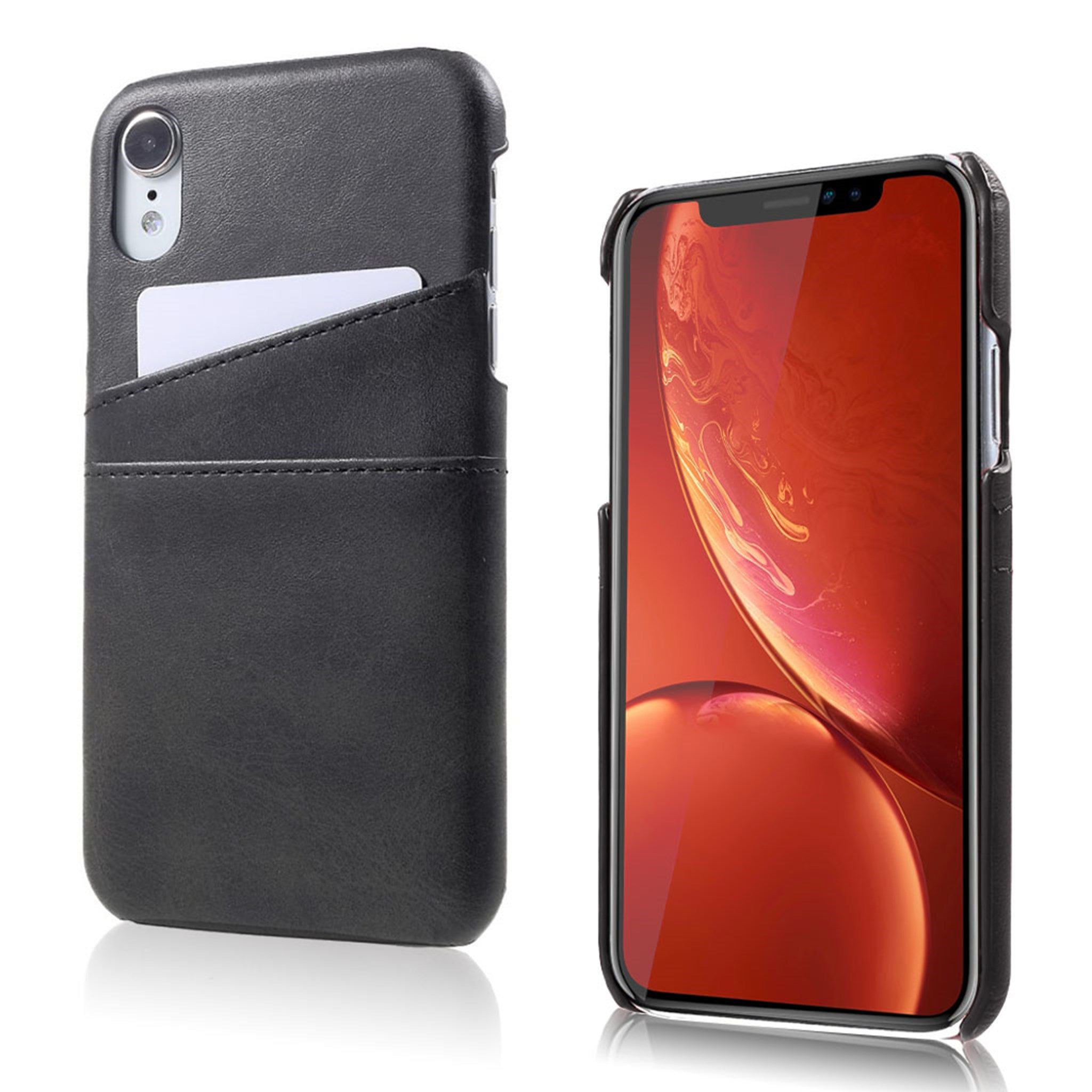 Funda de piel con doble ranura para tarjetas iPhone Xr - Negro