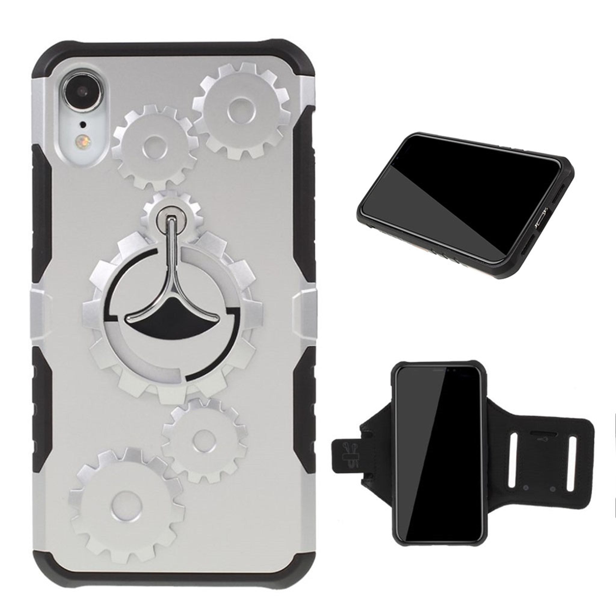 Funda híbrida con pata de cabra con diseño de engranajes para iPhone Xr - Plata