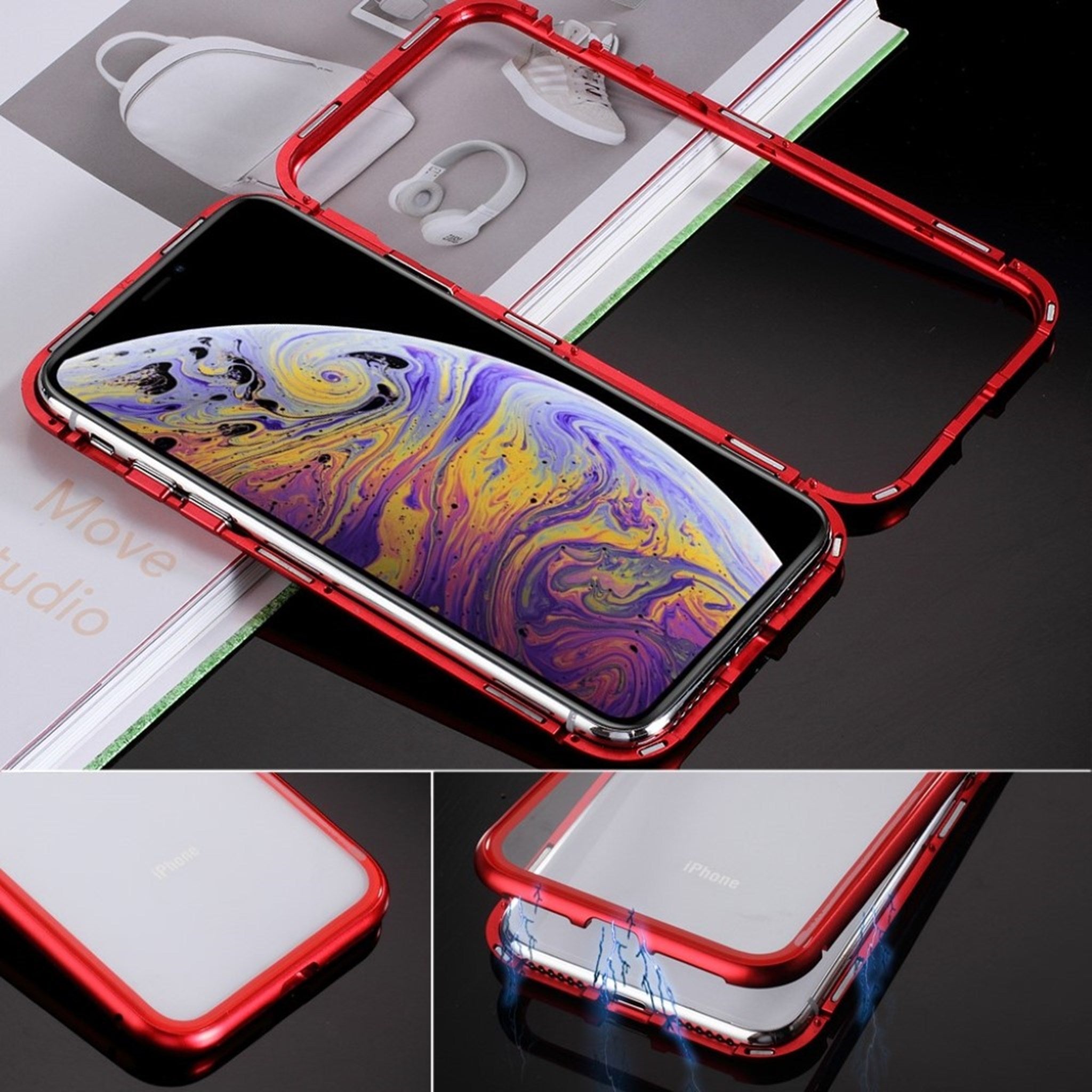 Funda de cristal templado con marco metálico para iPhone Xr - Rojo