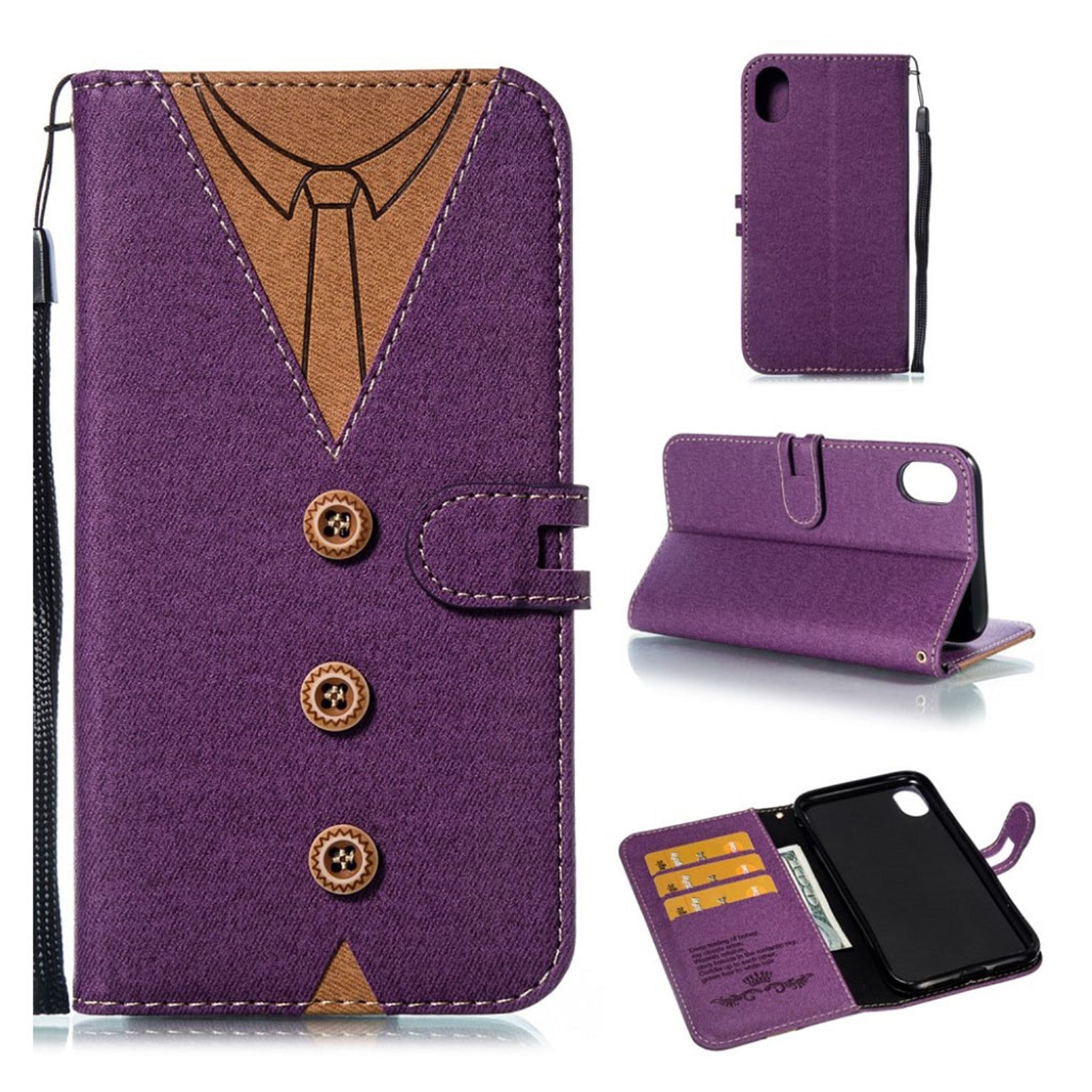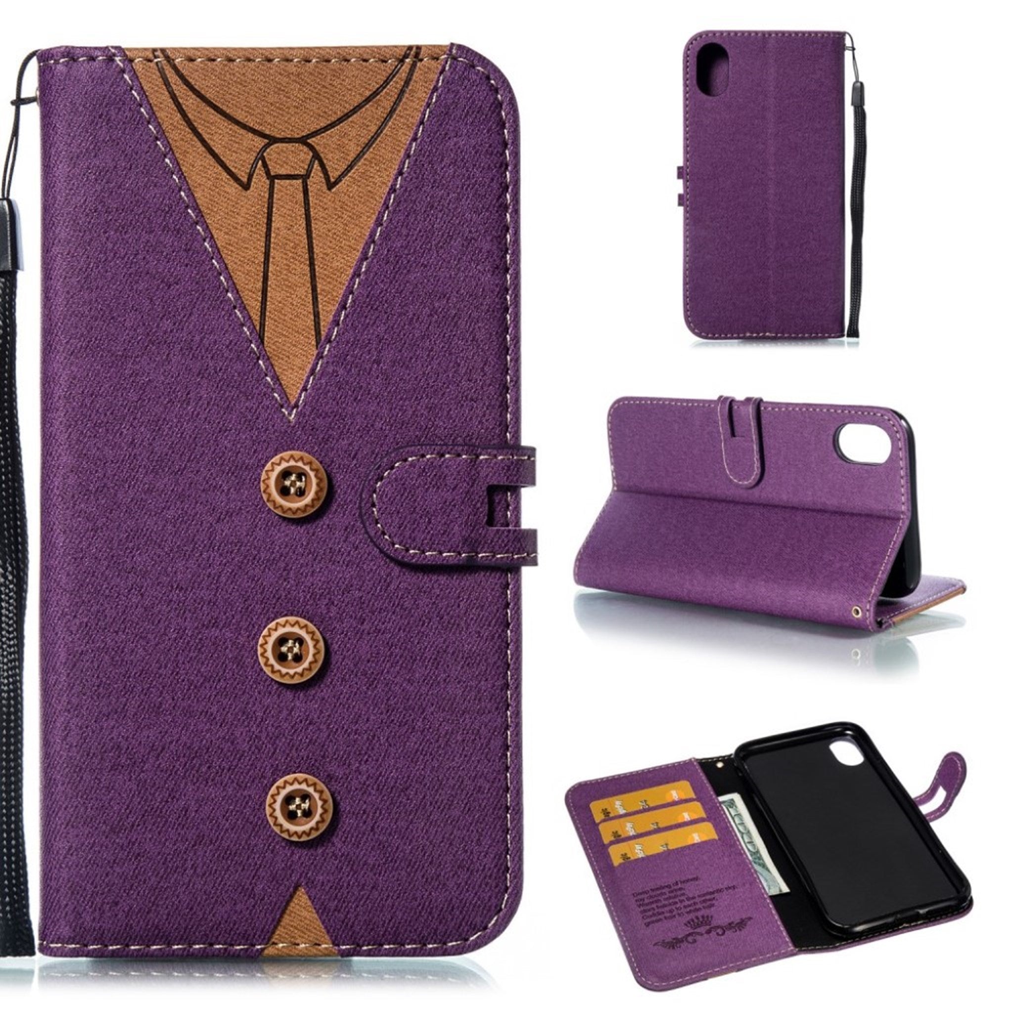 Funda abatible de piel con estampado de corbata para iPhone Xr - Morado