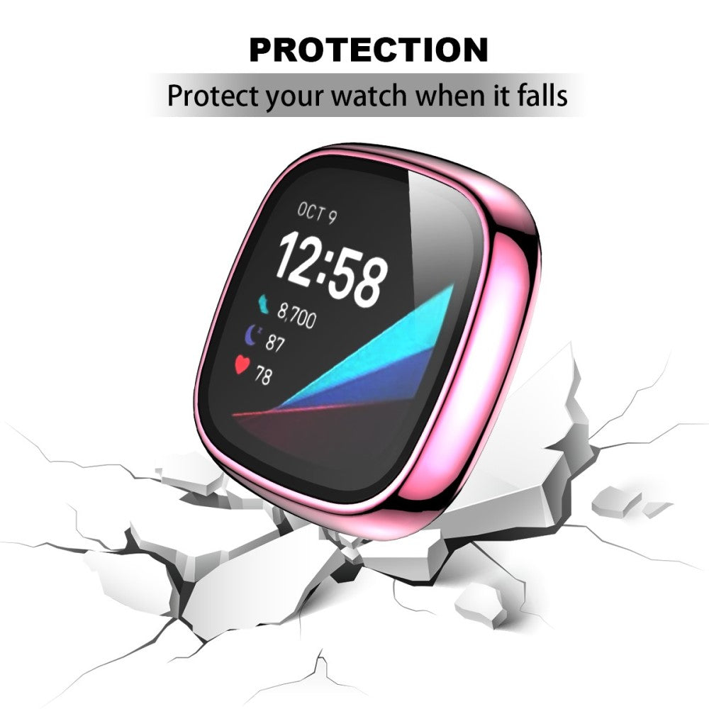Funda galvánica Fitbit Sense / Versa 3 con cristal templado - Rosa