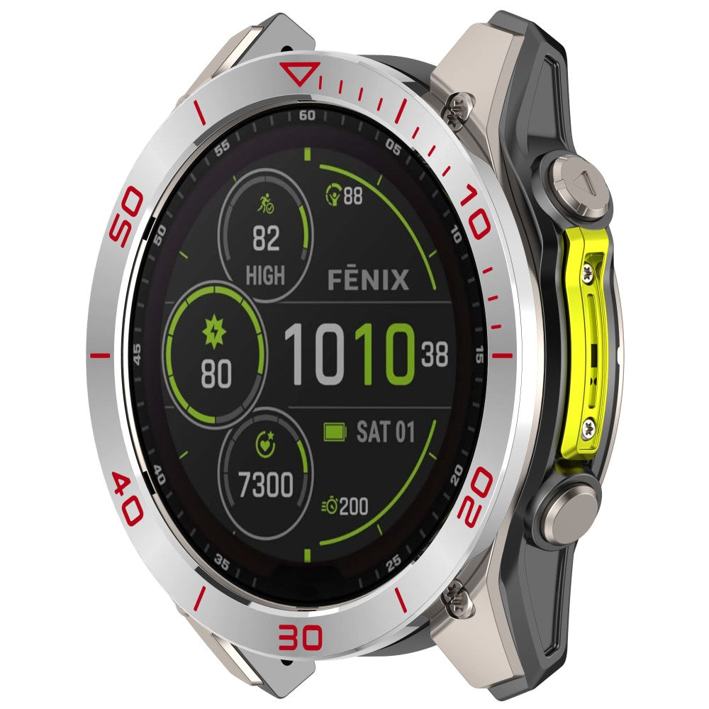 Garmin Fenix 8 47 mm Versión AMOLED Bisel de acero inoxidable Anillo protector resistente a los arañazos - Plata+Rojo