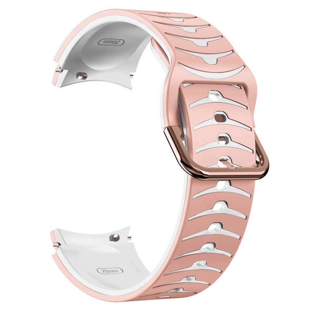 Tanto si buscas una pulsera deportiva como elegante, tenemos opciones que se adaptan a todos los estilos y ocasiones. Nuestras correas para Samsung Galaxy Watch 5 40 mm están fabricadas con materiales de alta calidad, como silicona, nailon, piel y acero inoxidable, que garantizan tanto comodidad como durabilidad. Actualice el aspecto de su smartwatch con un nuevo color o material y hágalo más personal.