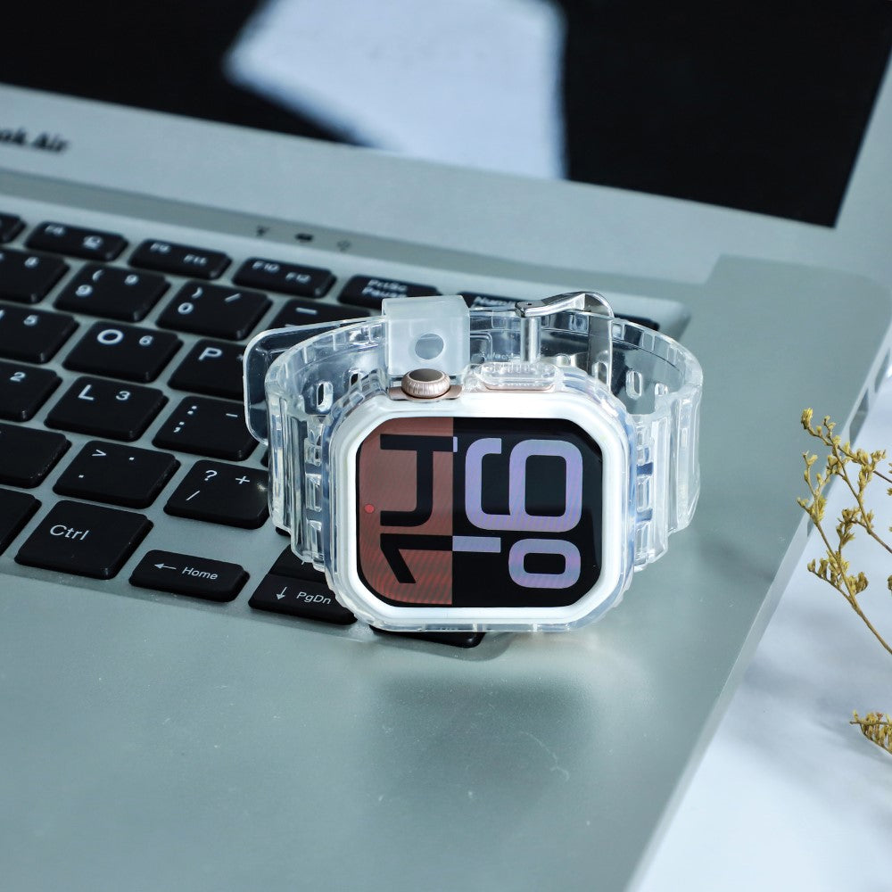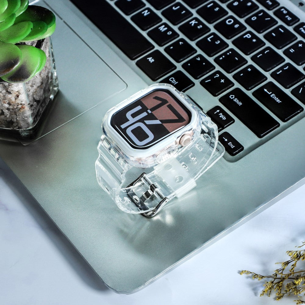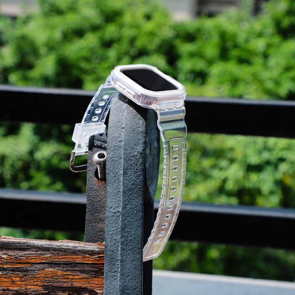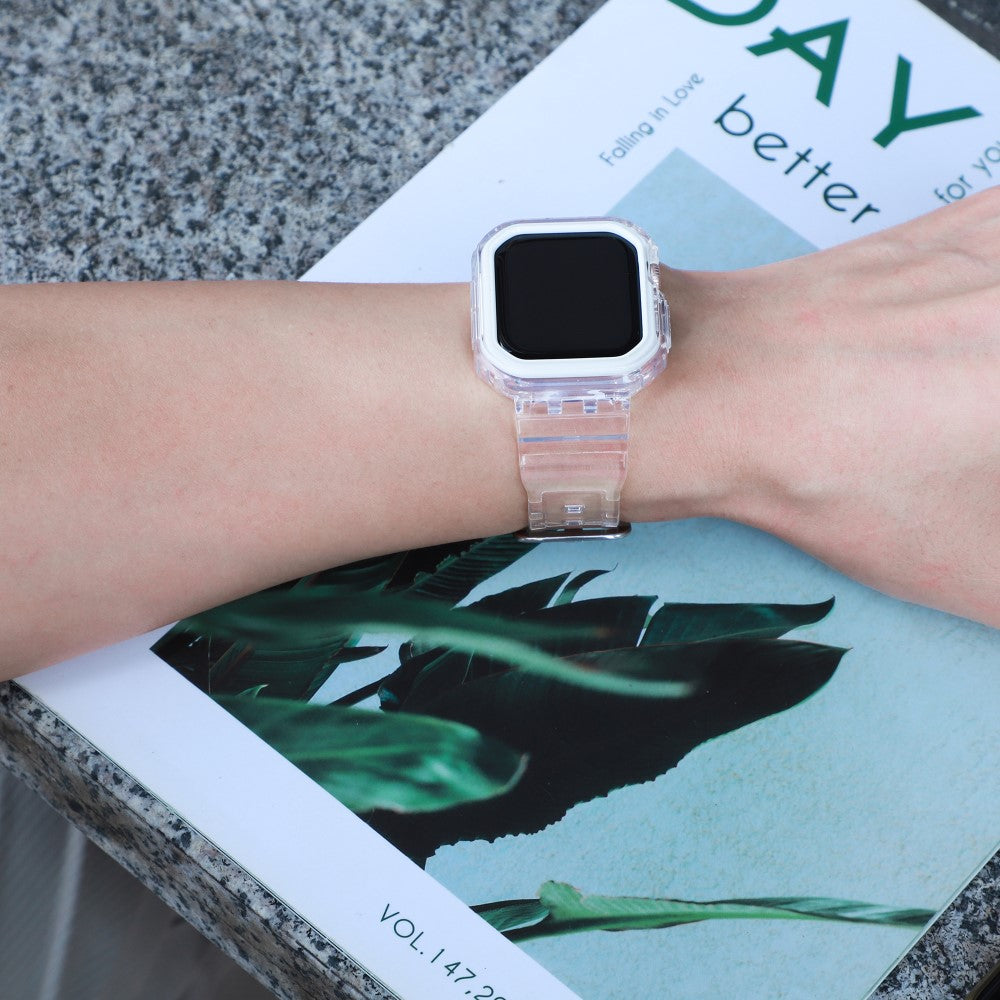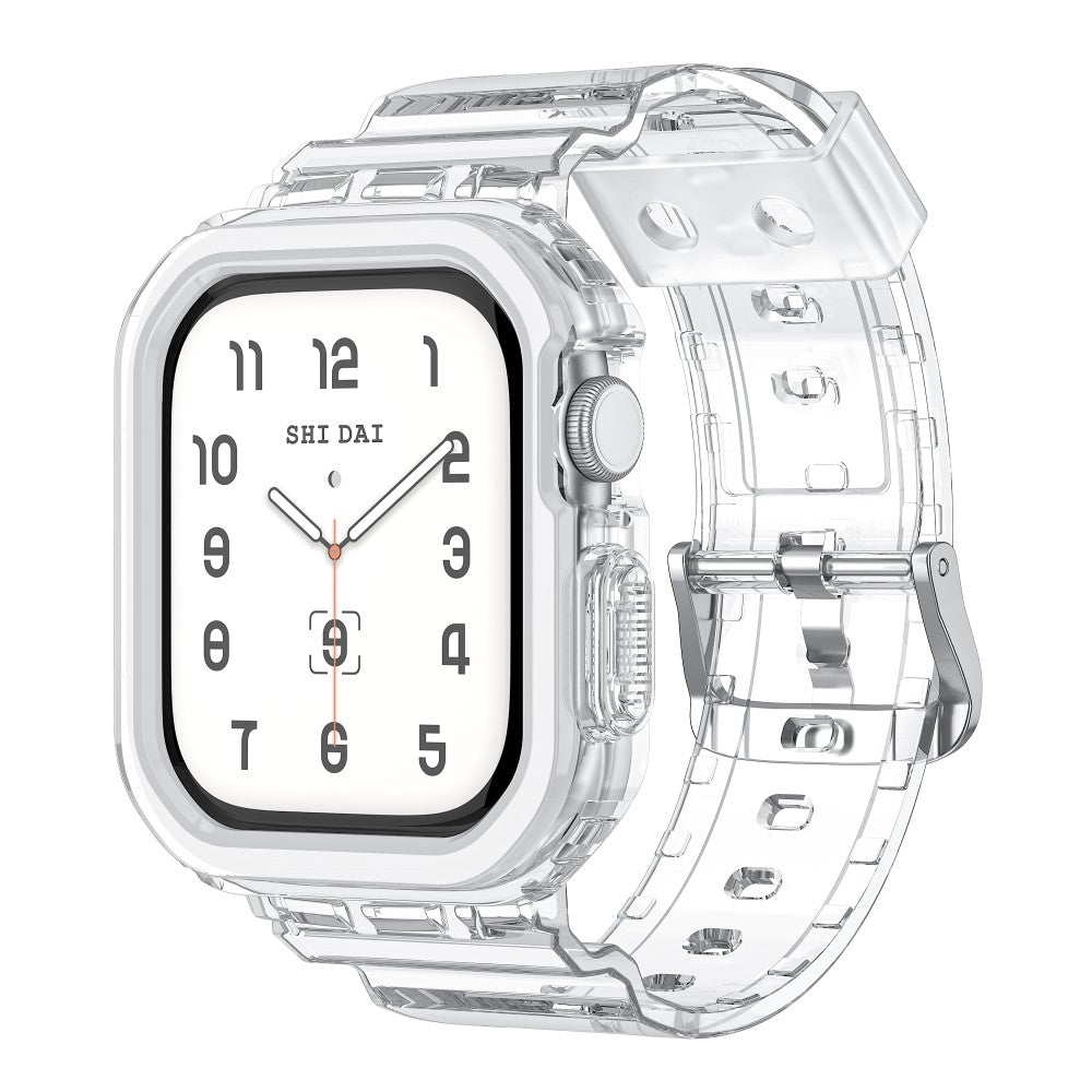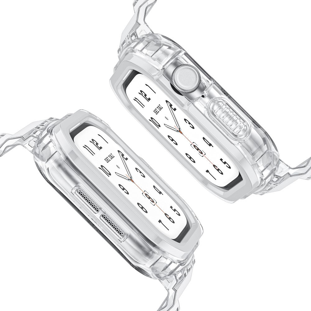 Apple Watch Series 10 46 mm Correa de reloj flexible+Cubierta de diseño integrado - Transparente / Marco Blanco