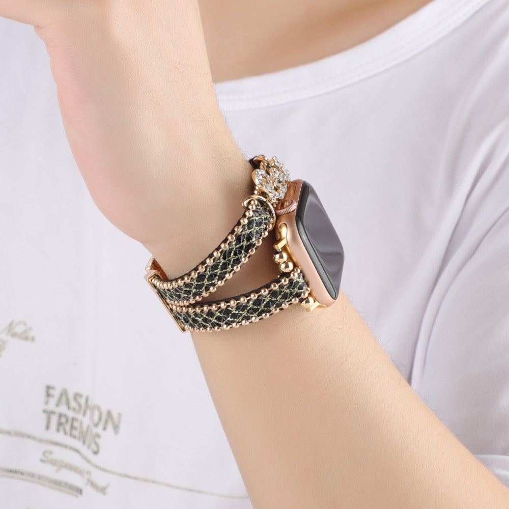 Apple Watch Series 8 (45 mm) / Watch Ultra cadena de metal y correa de piel - Negro