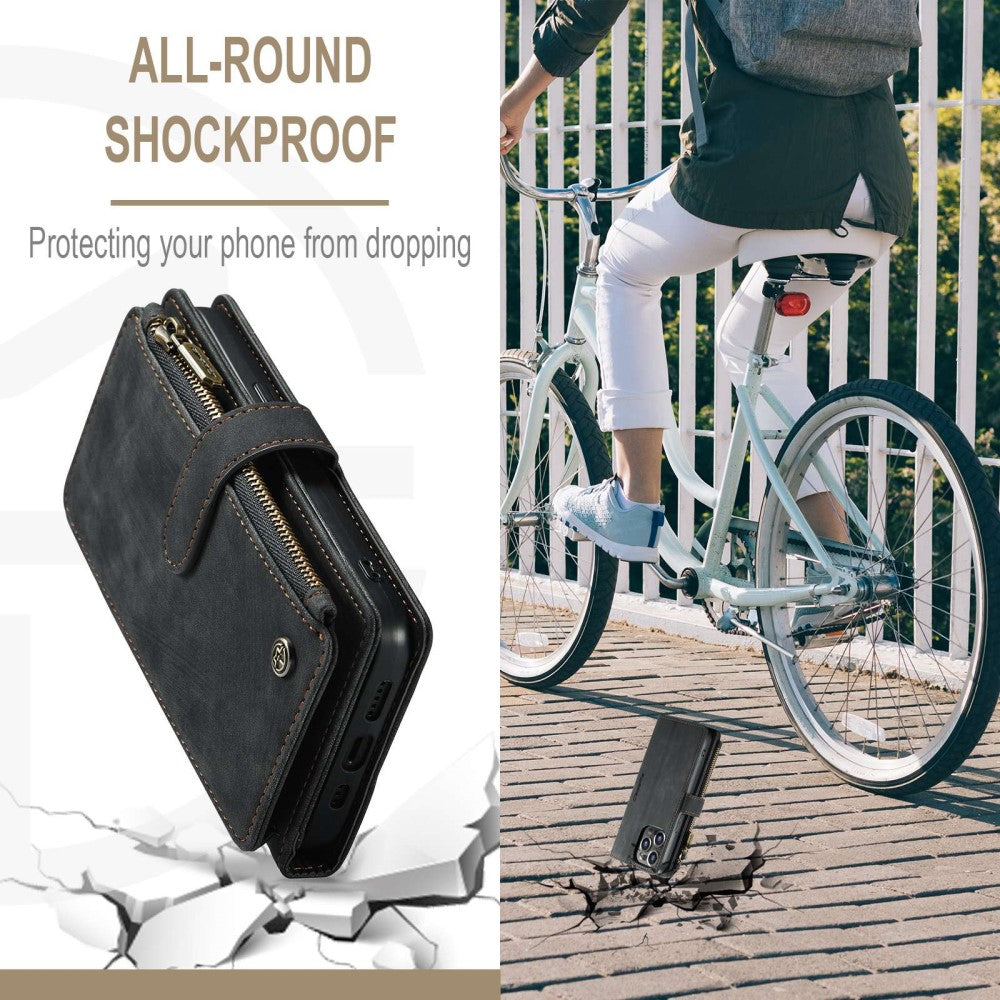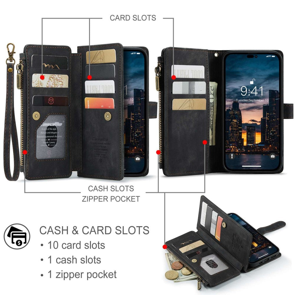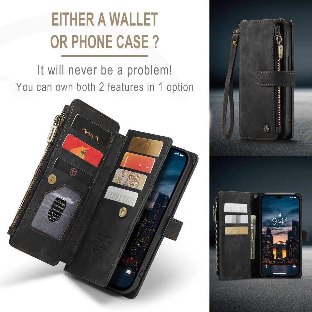 Carcasa de teléfono con cremallera y monedero CaseMe para iPhone 14 Pro Max - Negro