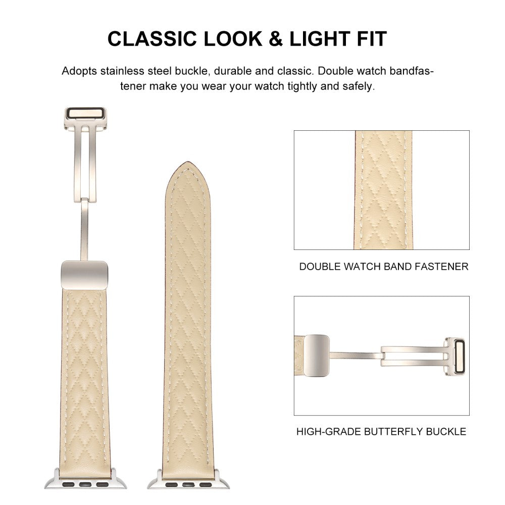 Correa de reloj de piel Apple Watch Series 10 42 mm Correa con textura de rombos y hebilla plegable - Starlight