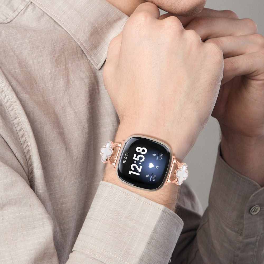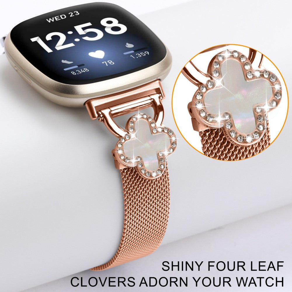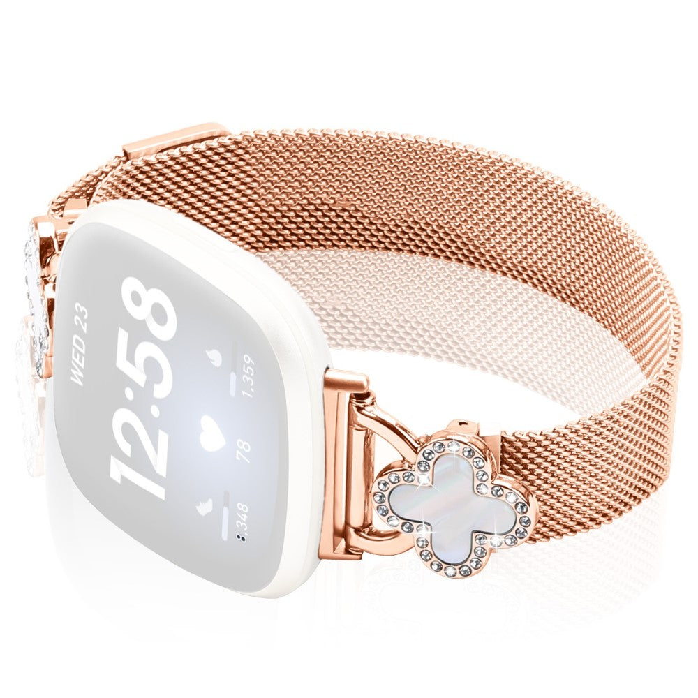 Correa de reloj Fitbit Versa 3 / Sense Milanese de acero inoxidable electrochapado con conector Clover, Talla: S - Oro Rosa
