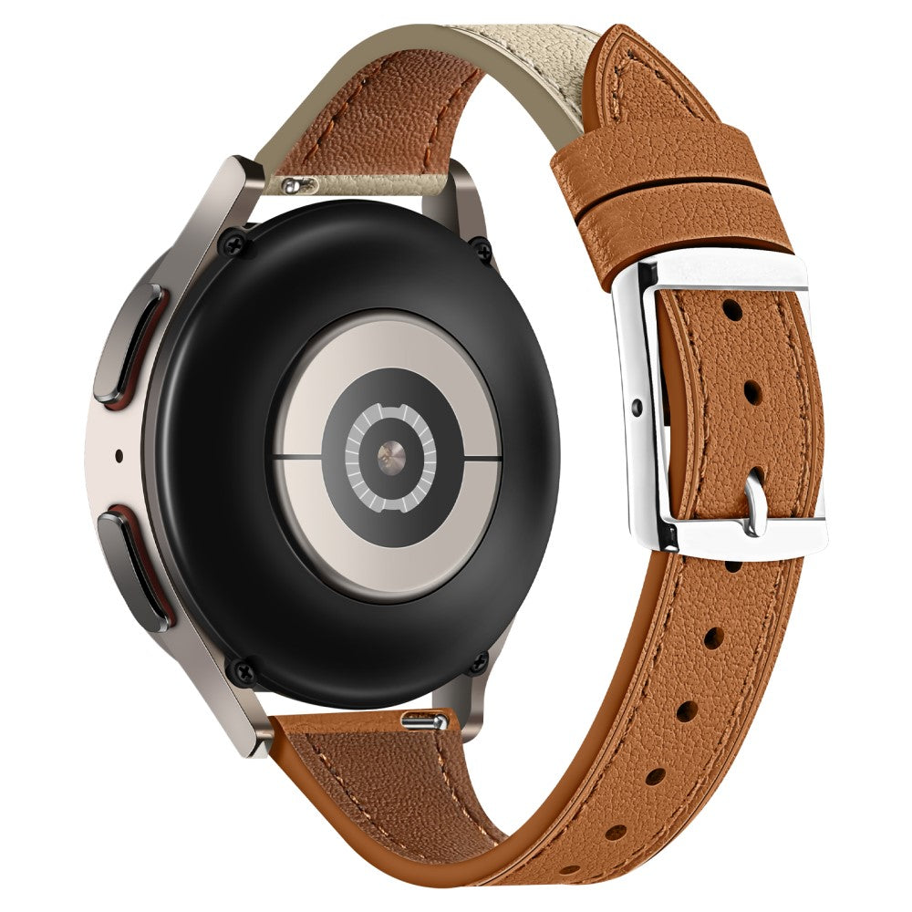 Correa universal de 20 mm para reloj inteligente Correa de piel de vaca auténtica de repuesto - Marrón+Beige