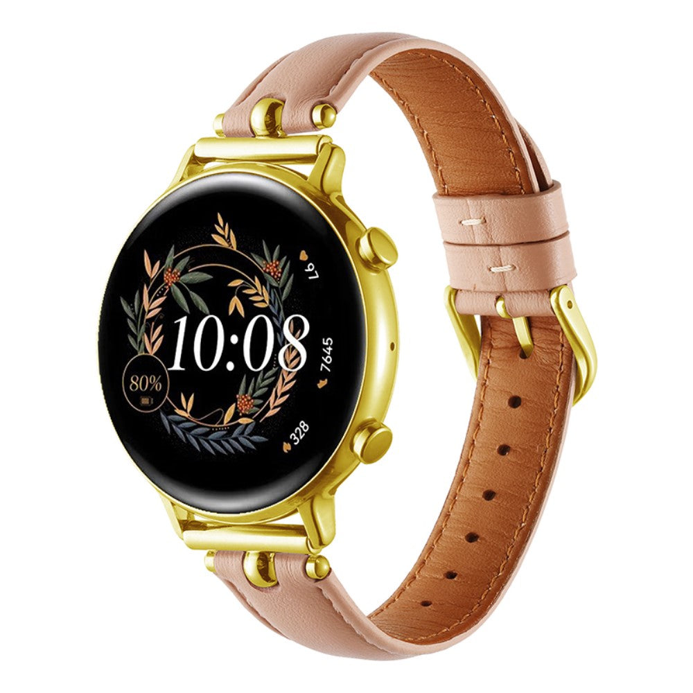 Correa universal de 20 mm para reloj inteligente Correa de piel de vaca auténtica de repuesto - Rosa Claro+Hebilla De Oro