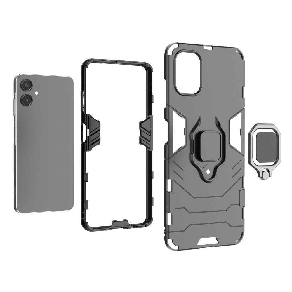 La funda está diseñada con un anillo en la parte posterior, que se puede plegar y usar como soporte para el teléfono.
