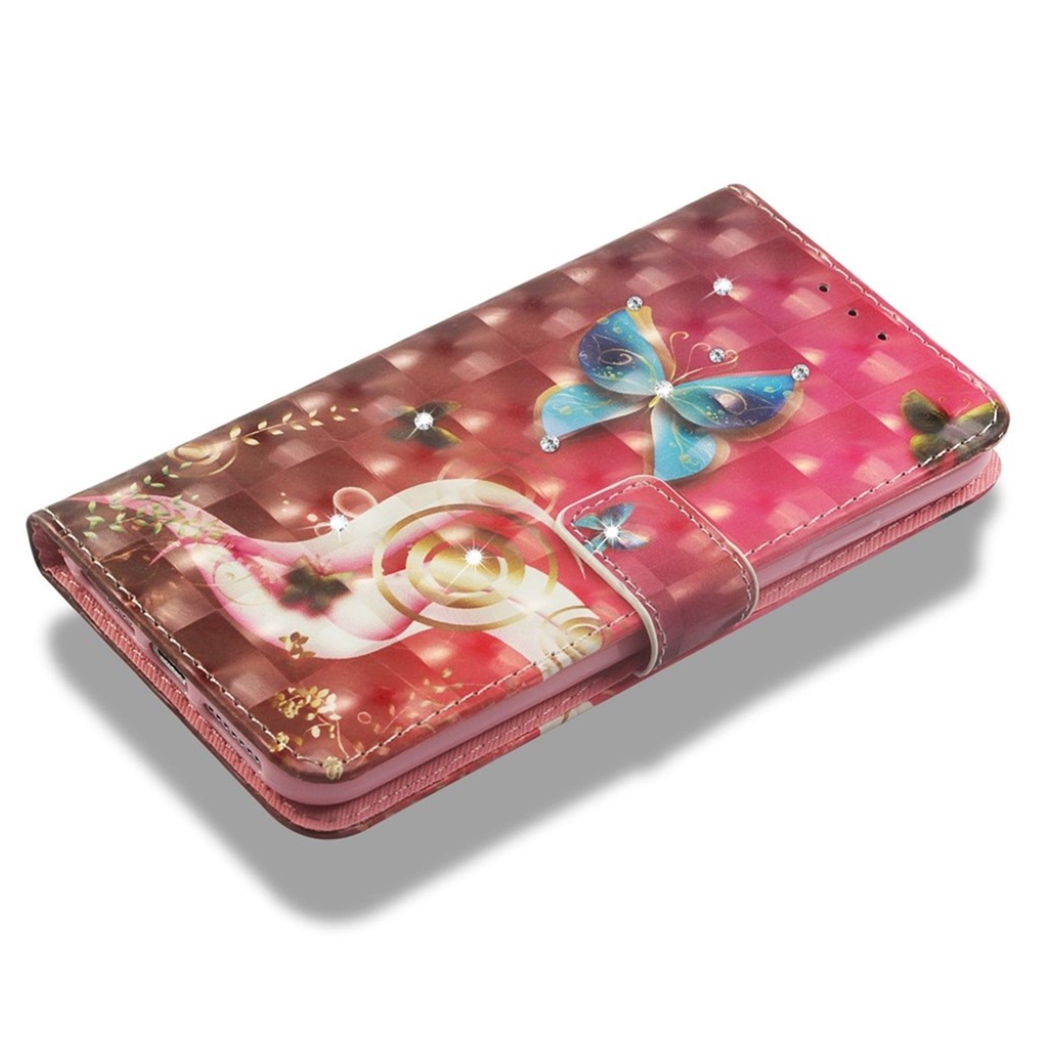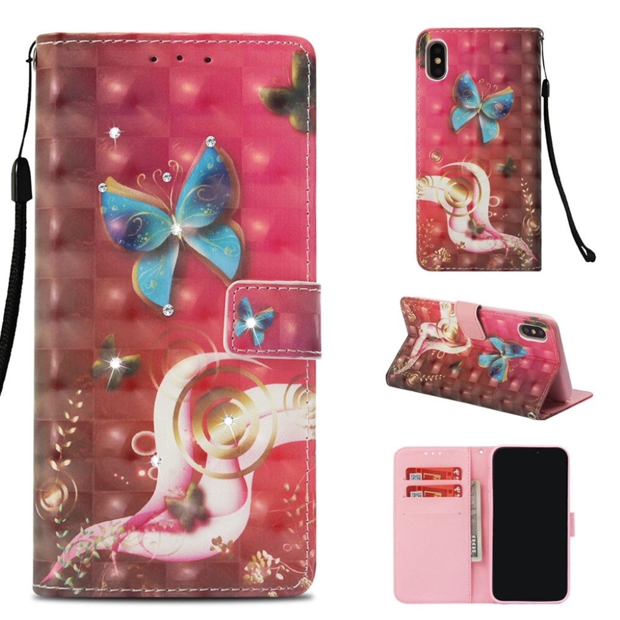El iPhone Xs Max está fabricado con una piel sintética con un borde impreso y un diseño de cristal de bengala - Mariposa Azul