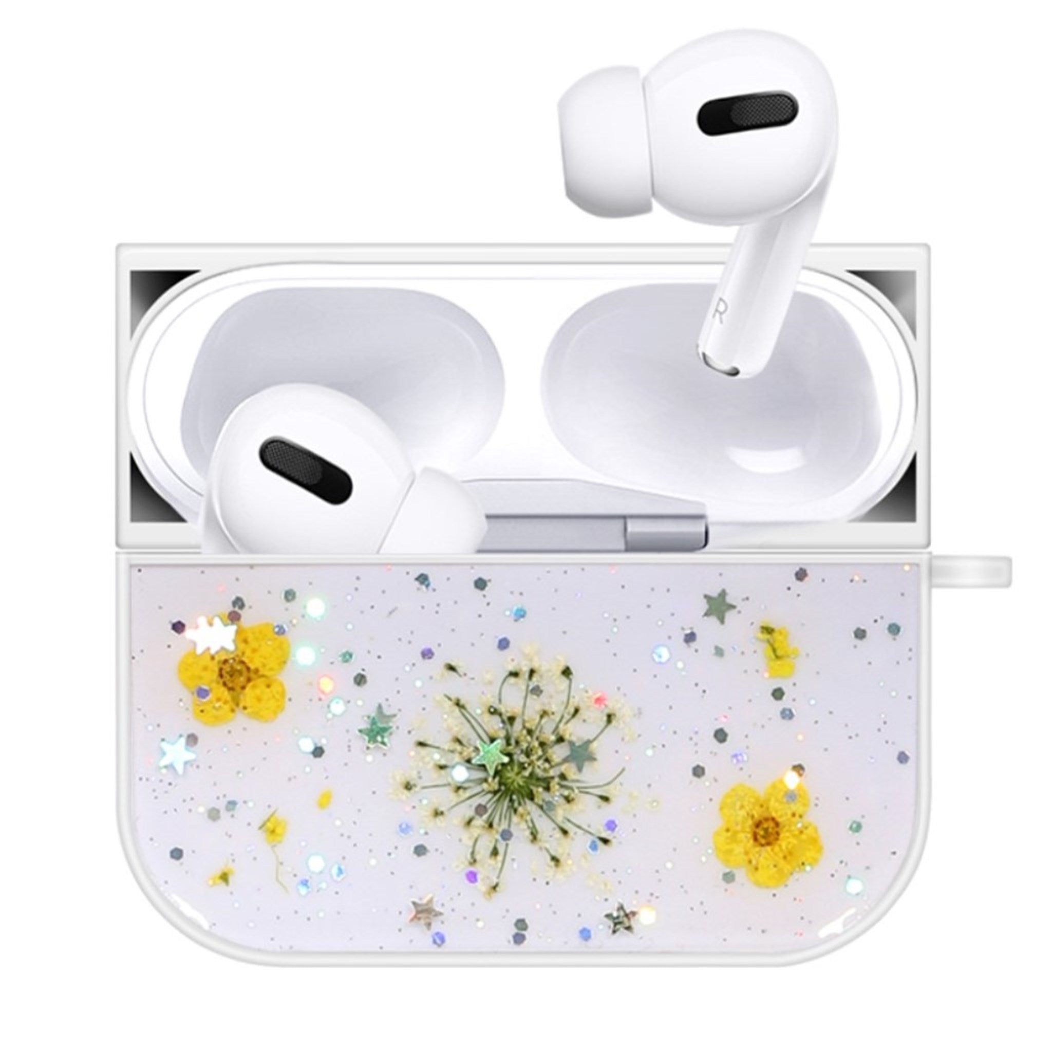 Estuche Airpods Pro con diseño de flores + purpurina - Amarillo
