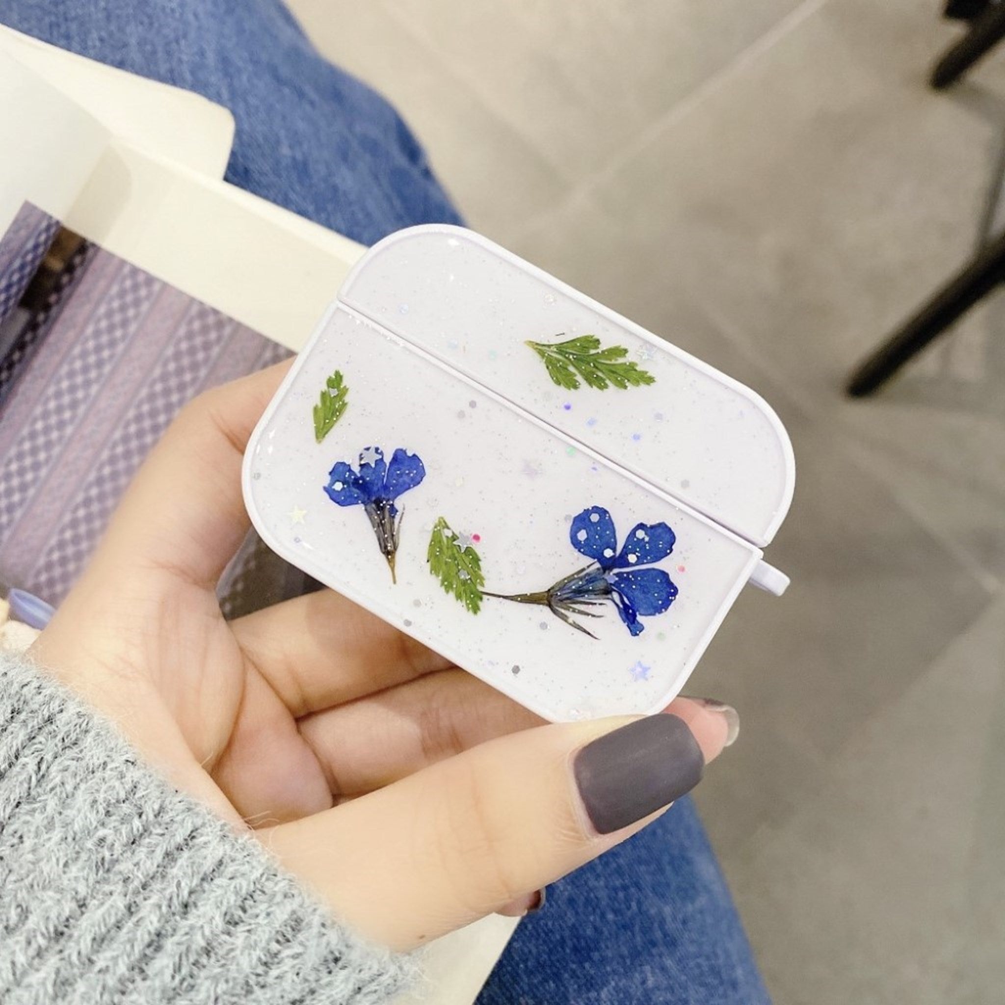 Estuche Airpods Pro con diseño de flores + purpurina - Azul