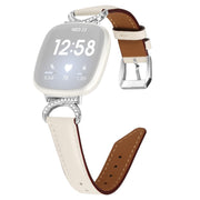 Fitbit Sense 2 / Versa 4 / Sense / Versa 3 correa de piel con conector y hebilla plateada - Albaricoque
