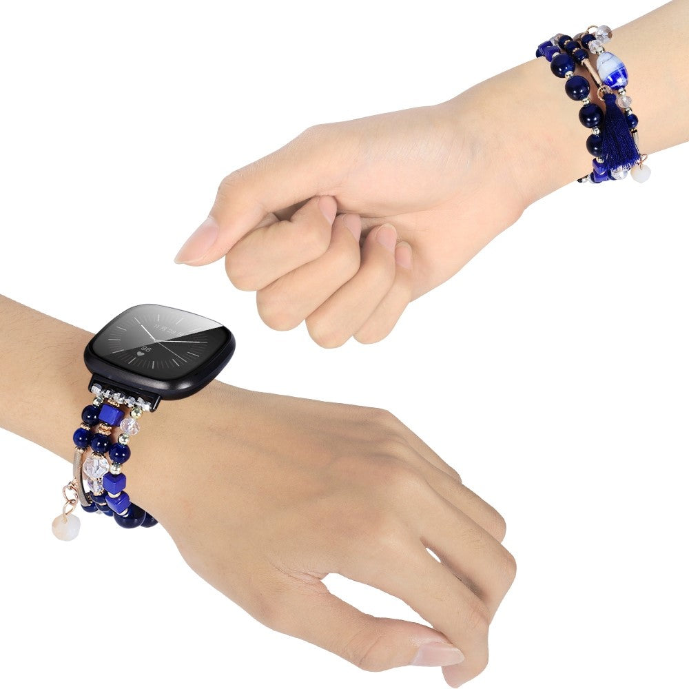 Fitbit Sense / Versa 3 elegante correa de reloj de cuentas adornada con borlas - Azul