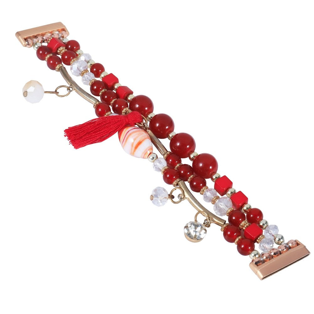 Fitbit Sense / Versa 3 elegante correa de reloj de cuentas adornada con borlas - Rojo