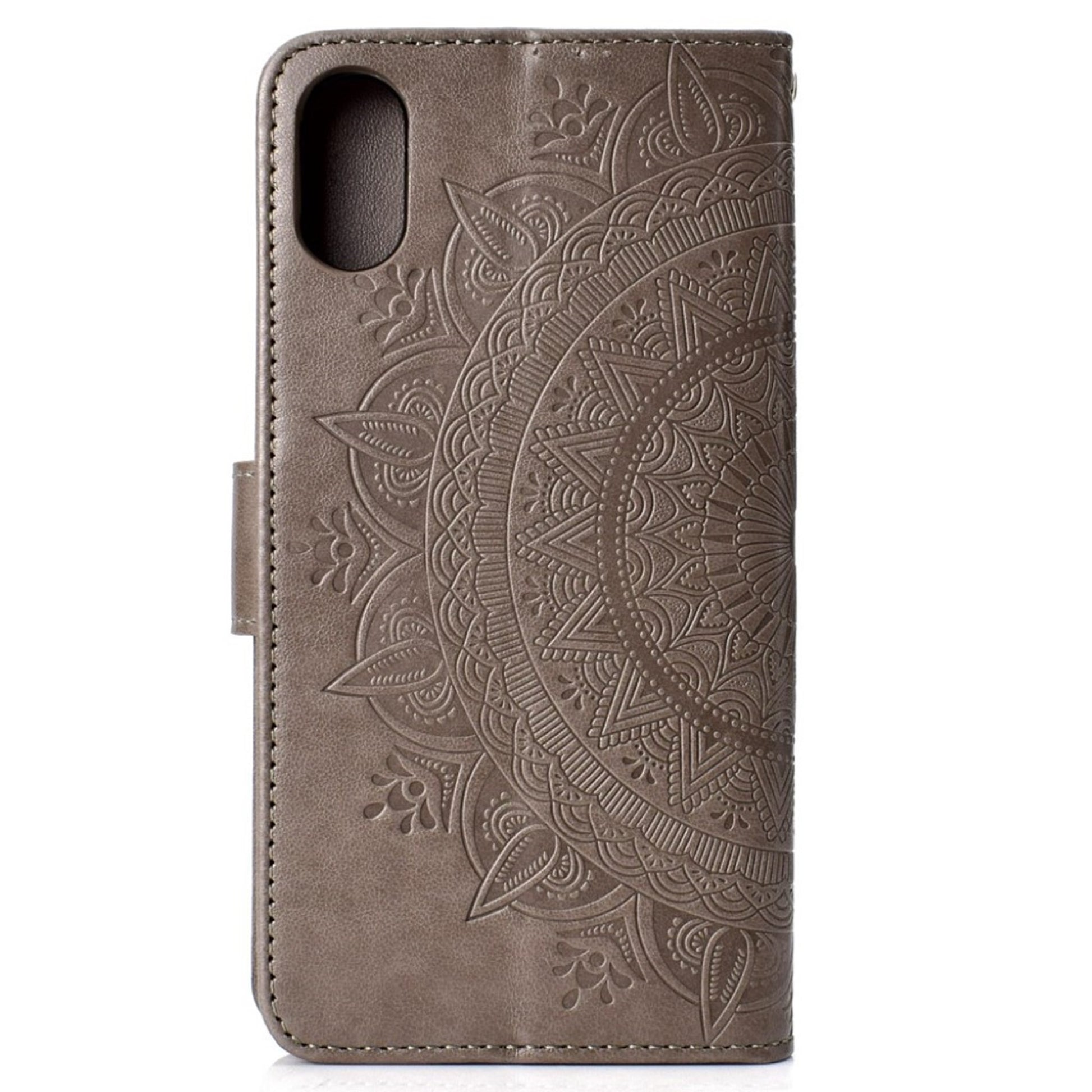 Funda abatible de piel con estampado de mandala para iPhone Xr - Gris