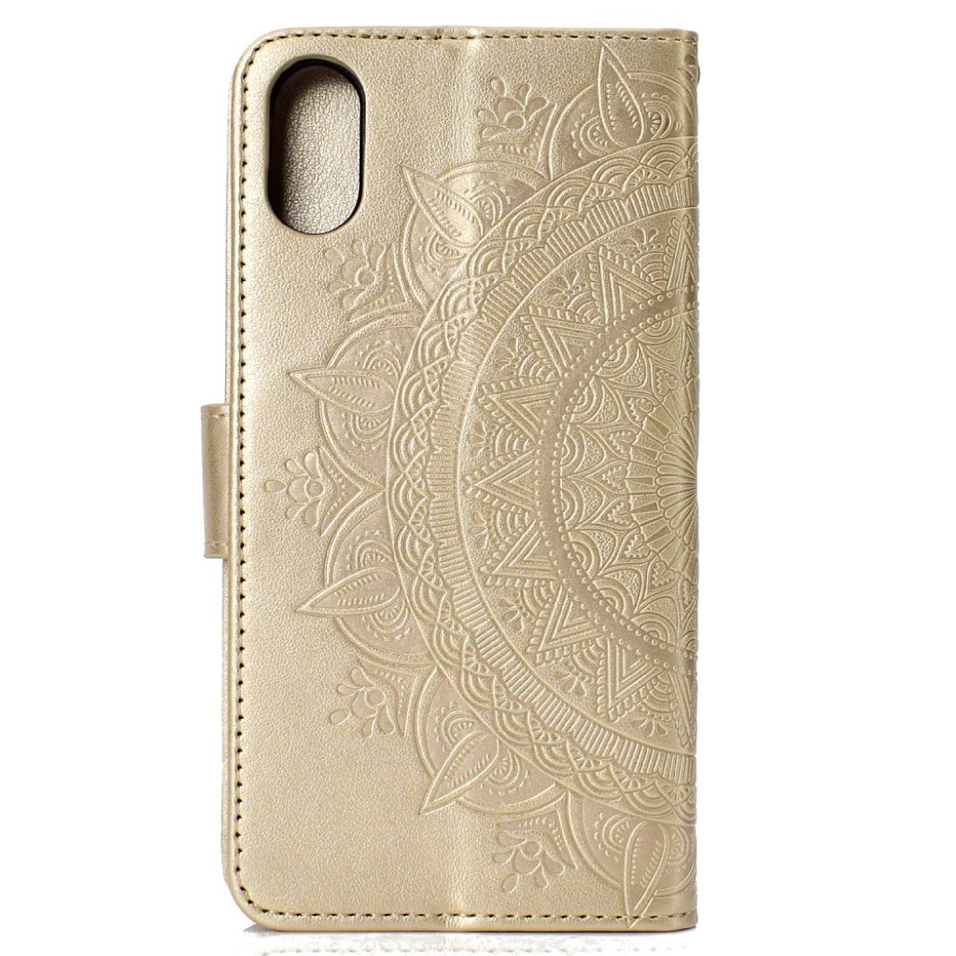 Funda abatible de piel con estampado de mandala para iPhone Xr - Oro