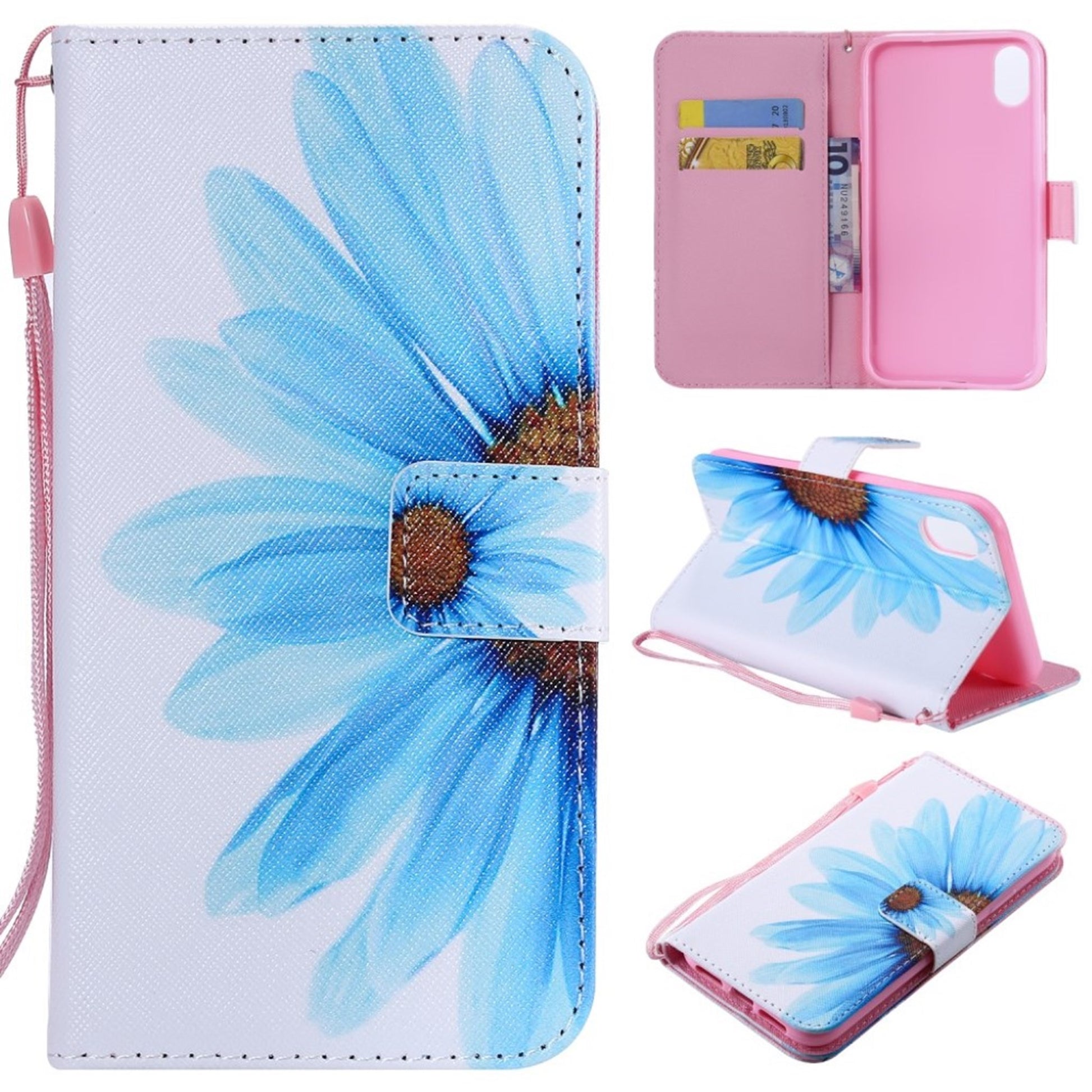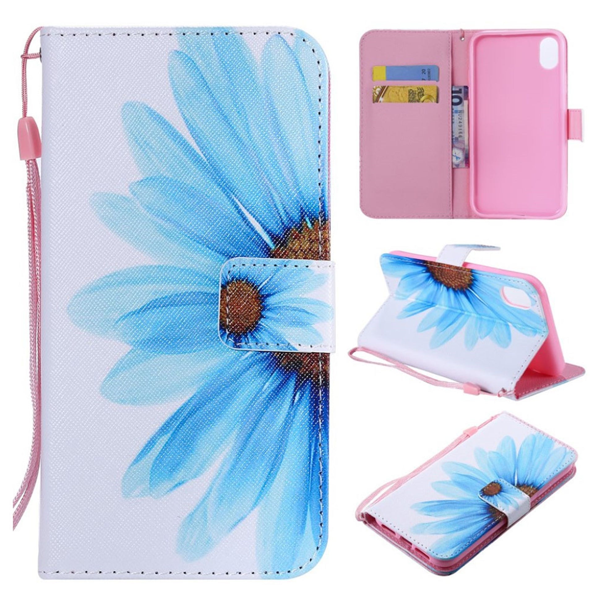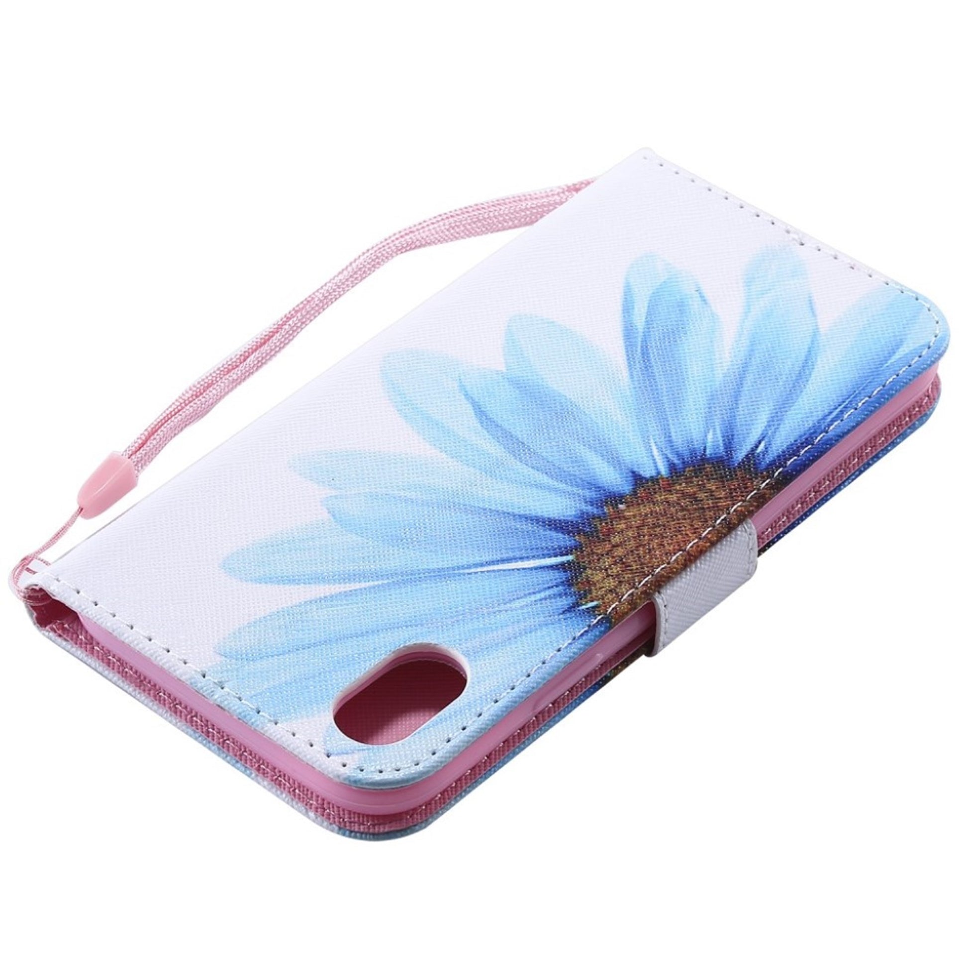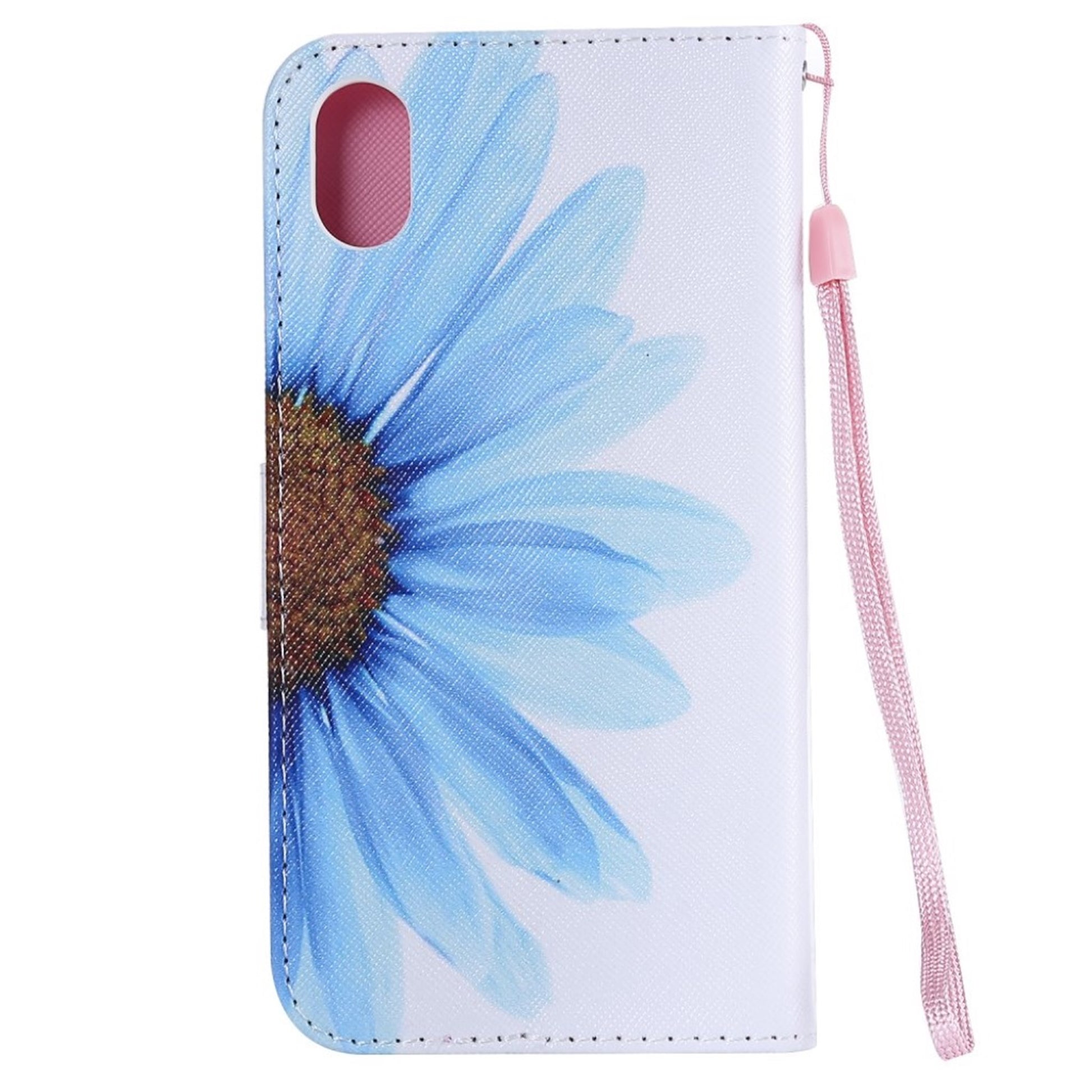 Funda abatible de piel con estampado de puntos luminosos para iPhone Xr - Flor Azul
