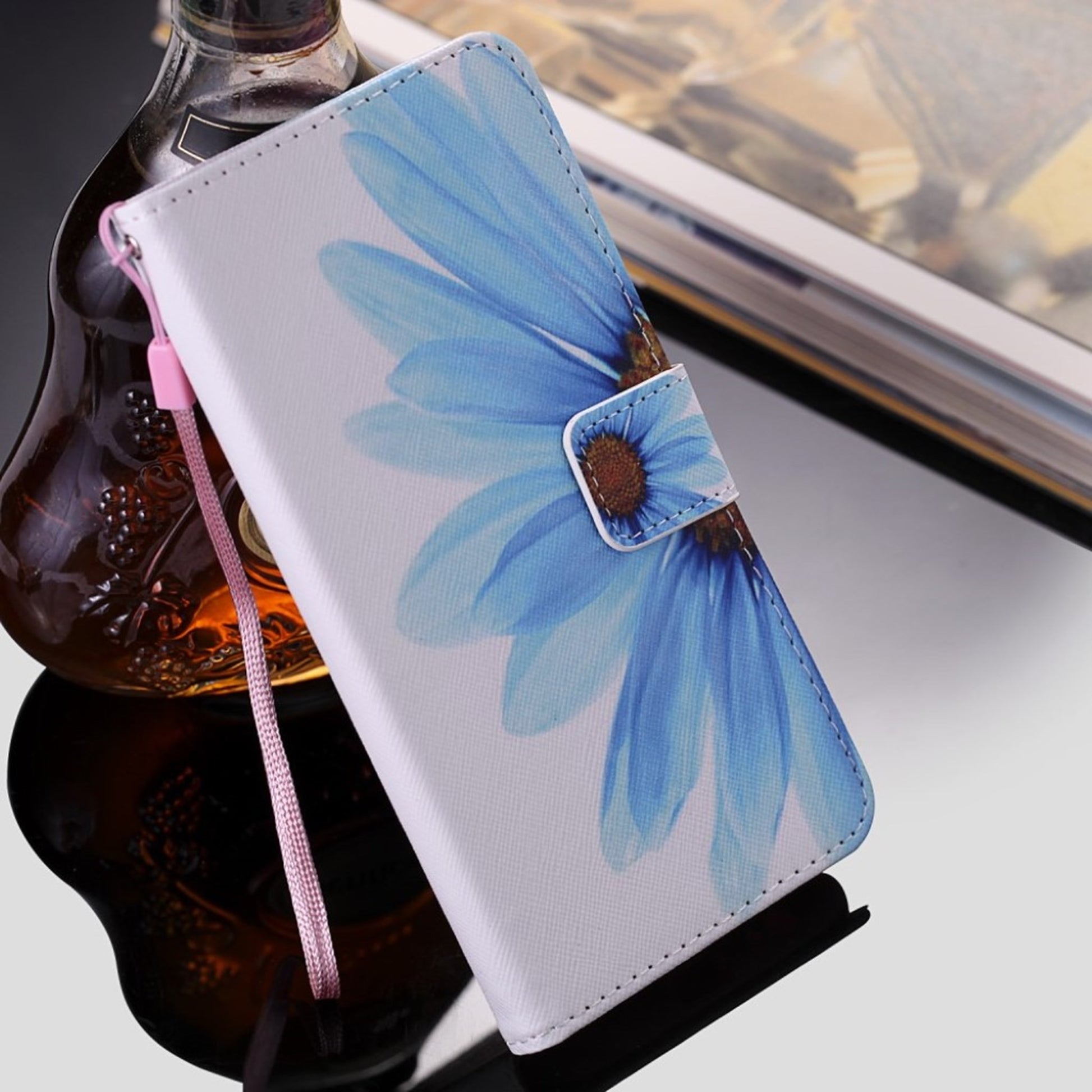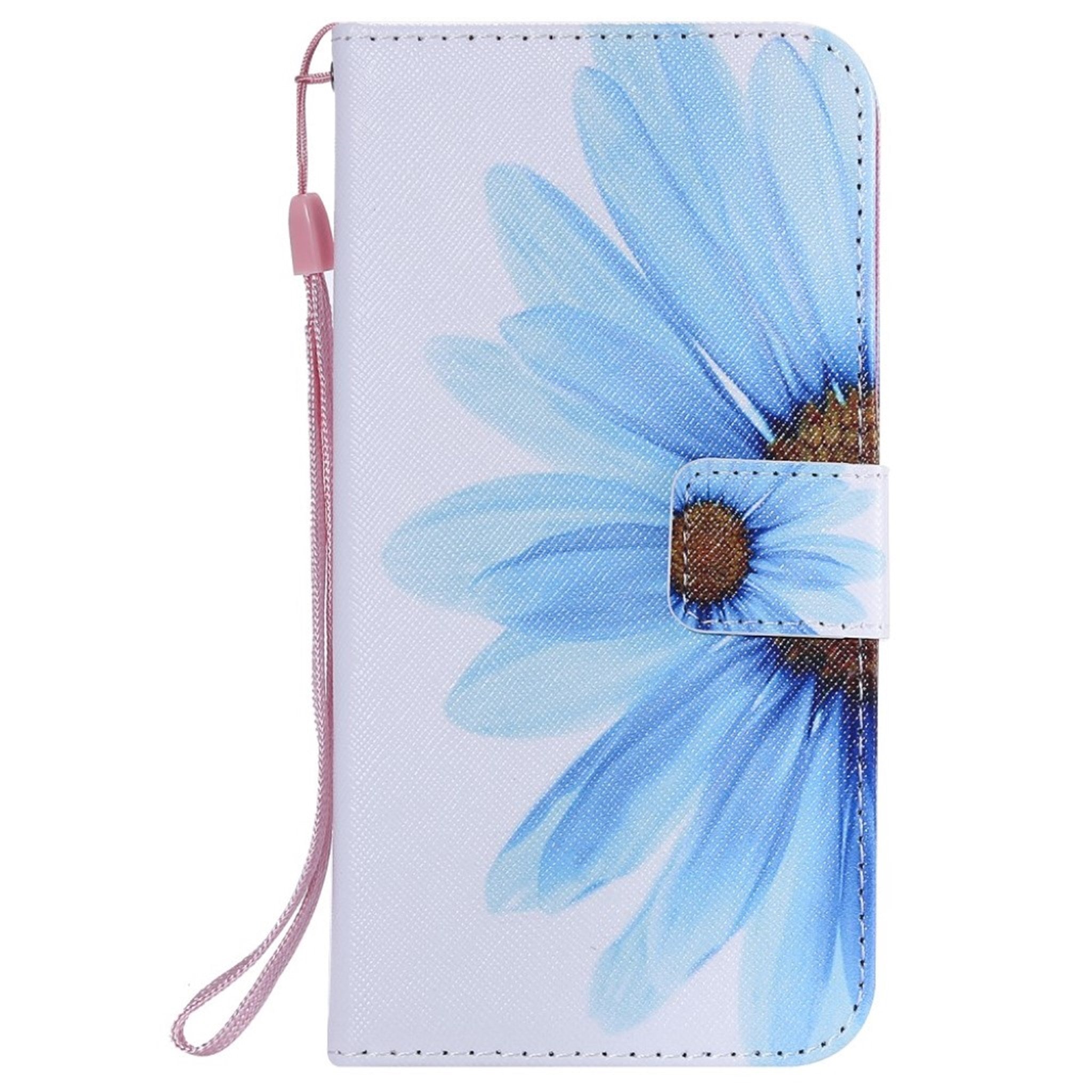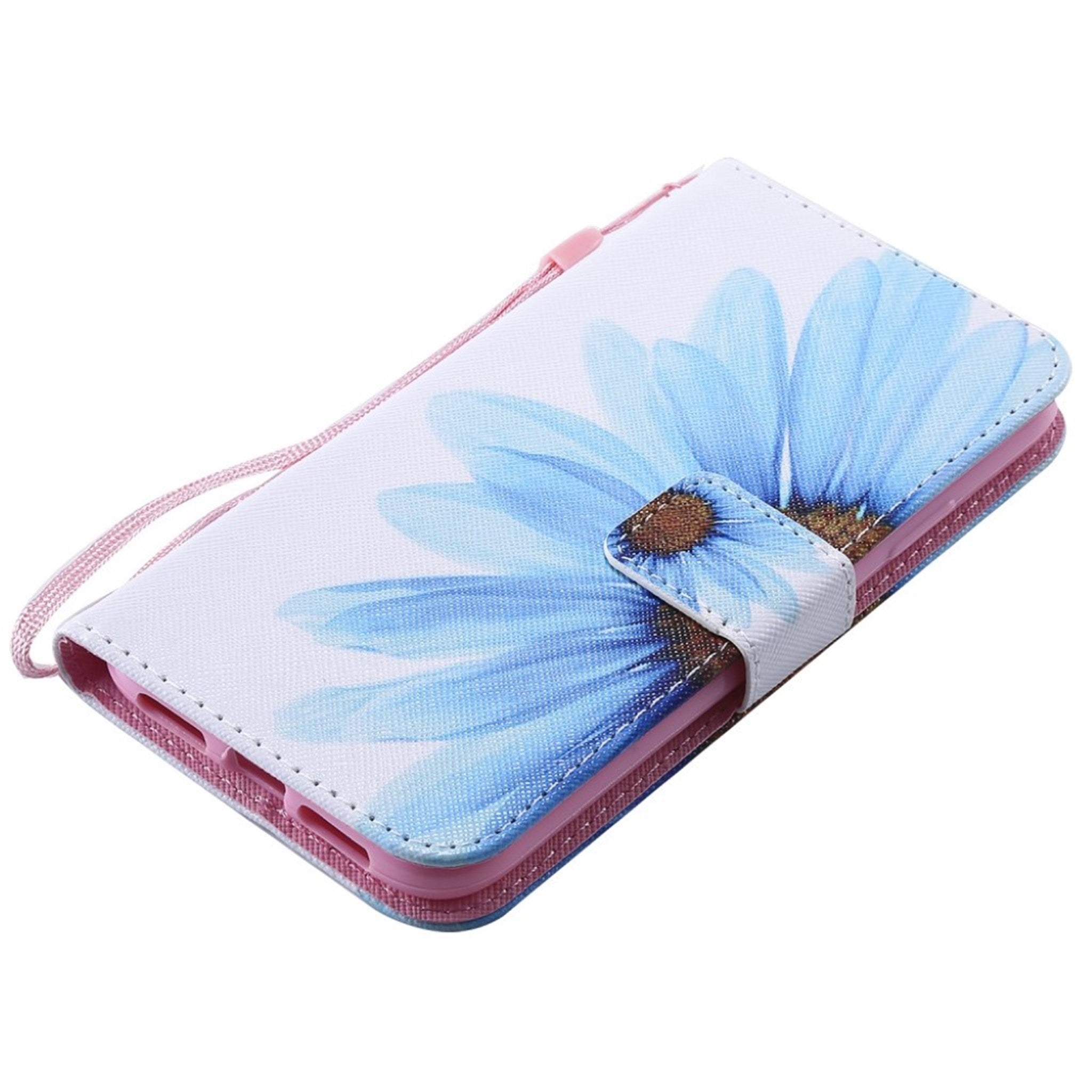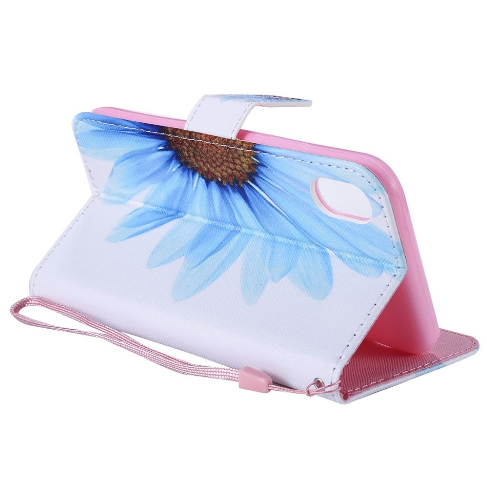 Funda abatible de piel con estampado de puntos luminosos para iPhone Xr - Flor Azul