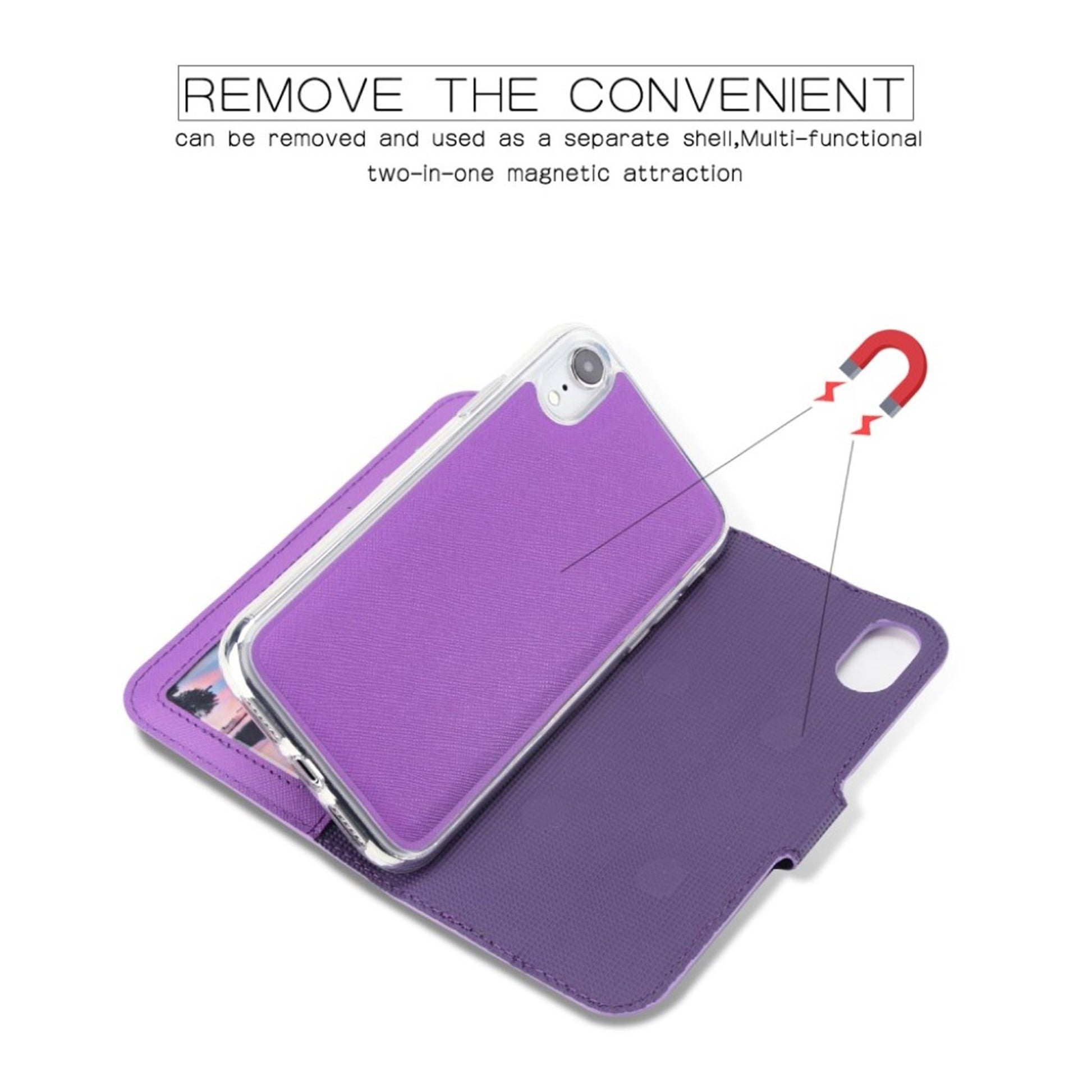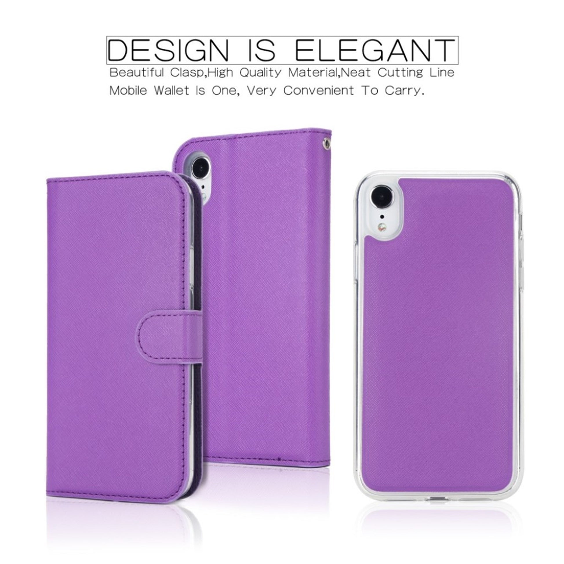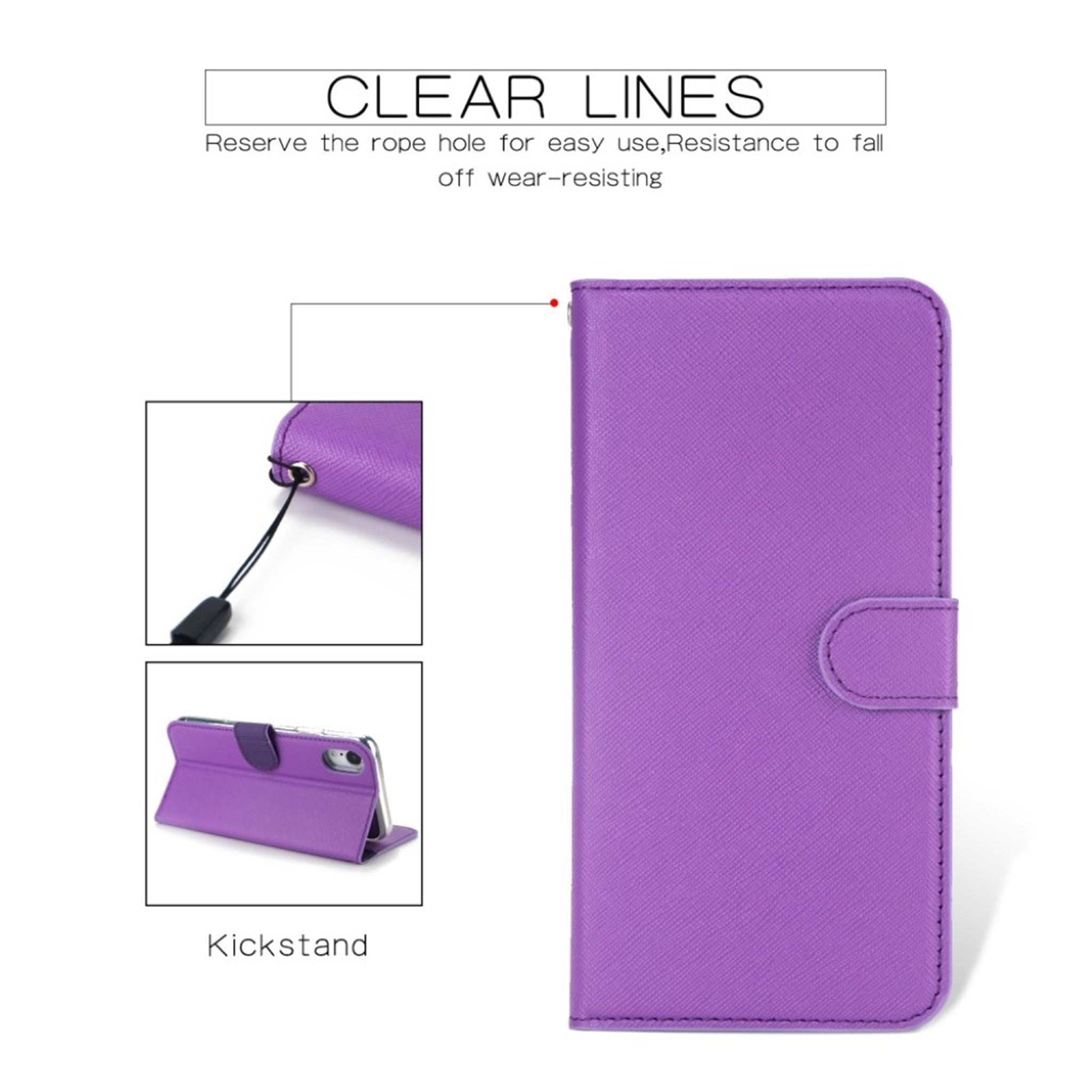 Funda abatible de piel con textura cruzada para iPhone Xr - Morado