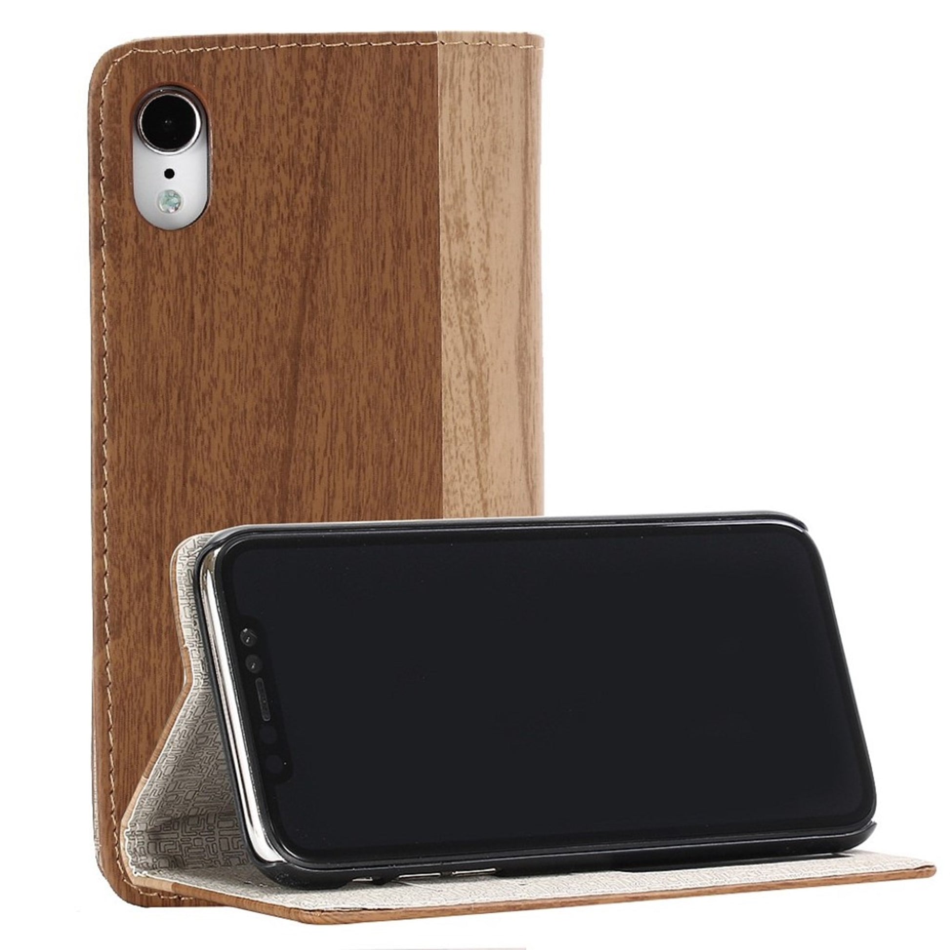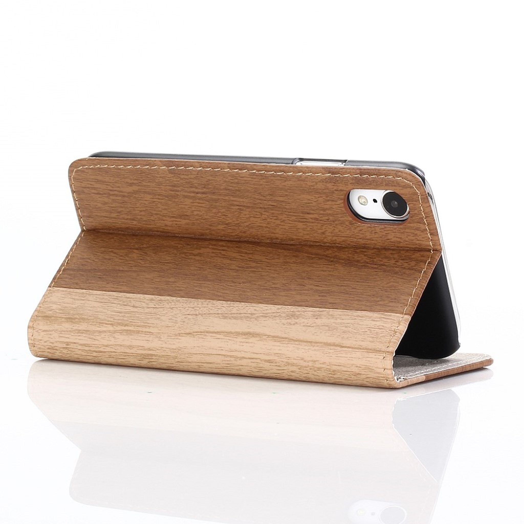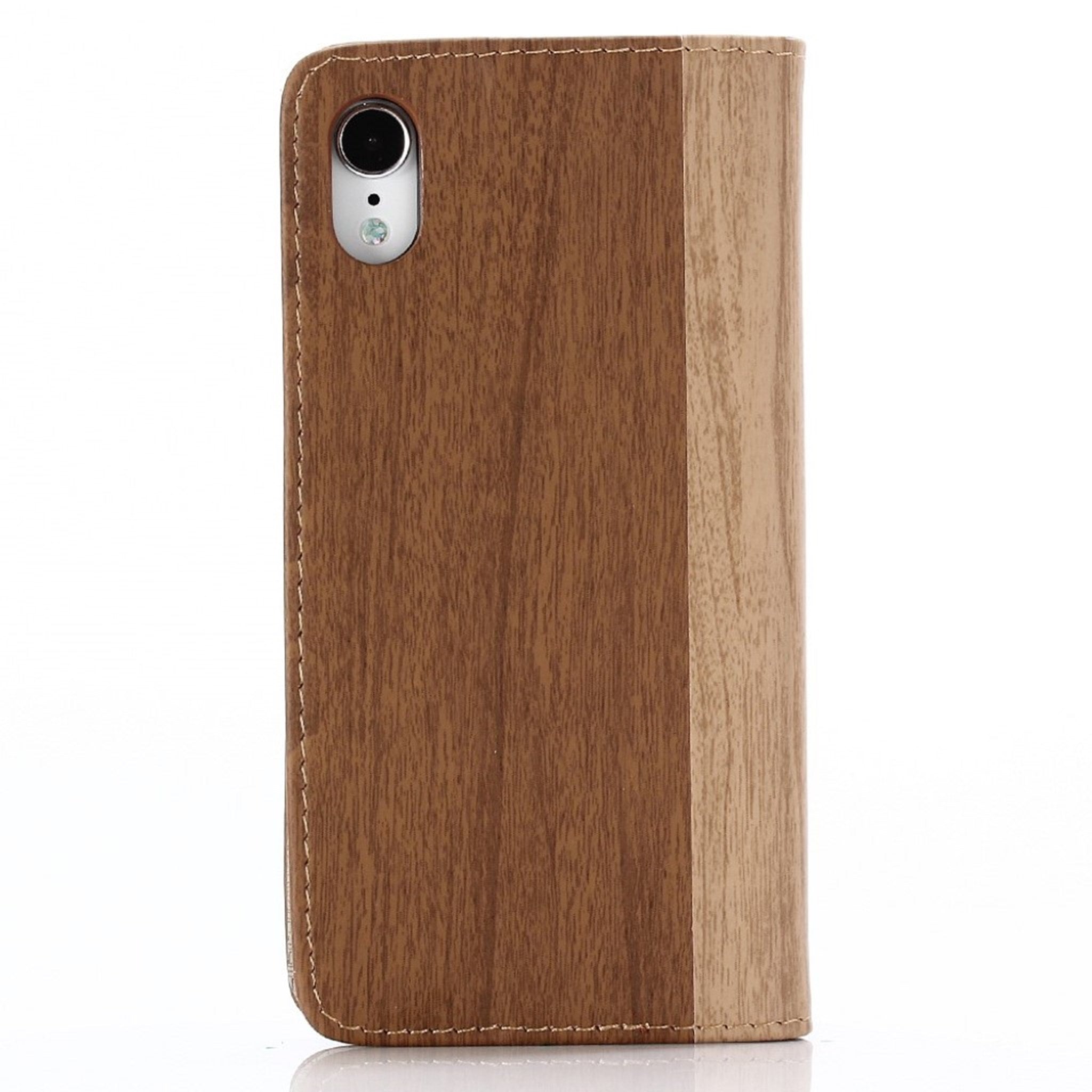 Funda abatible de piel con textura de madera para iPhone Xr - Marrón