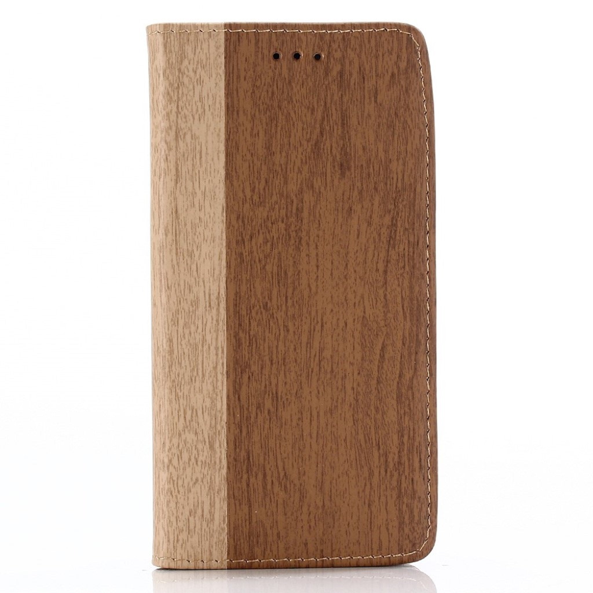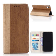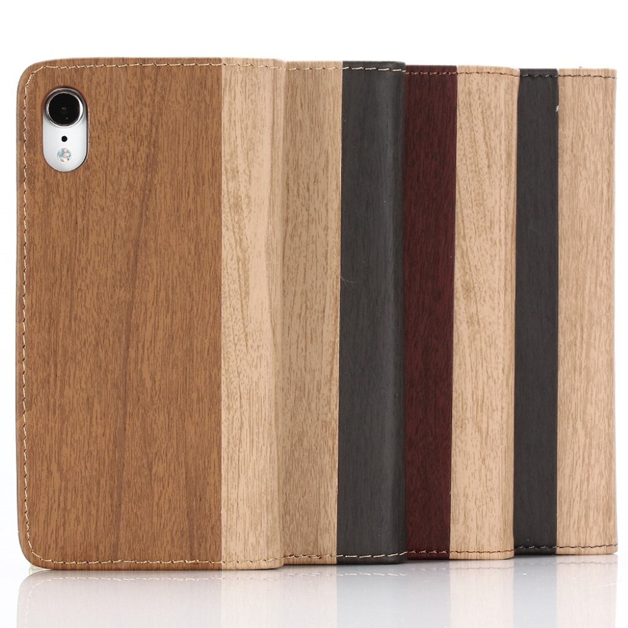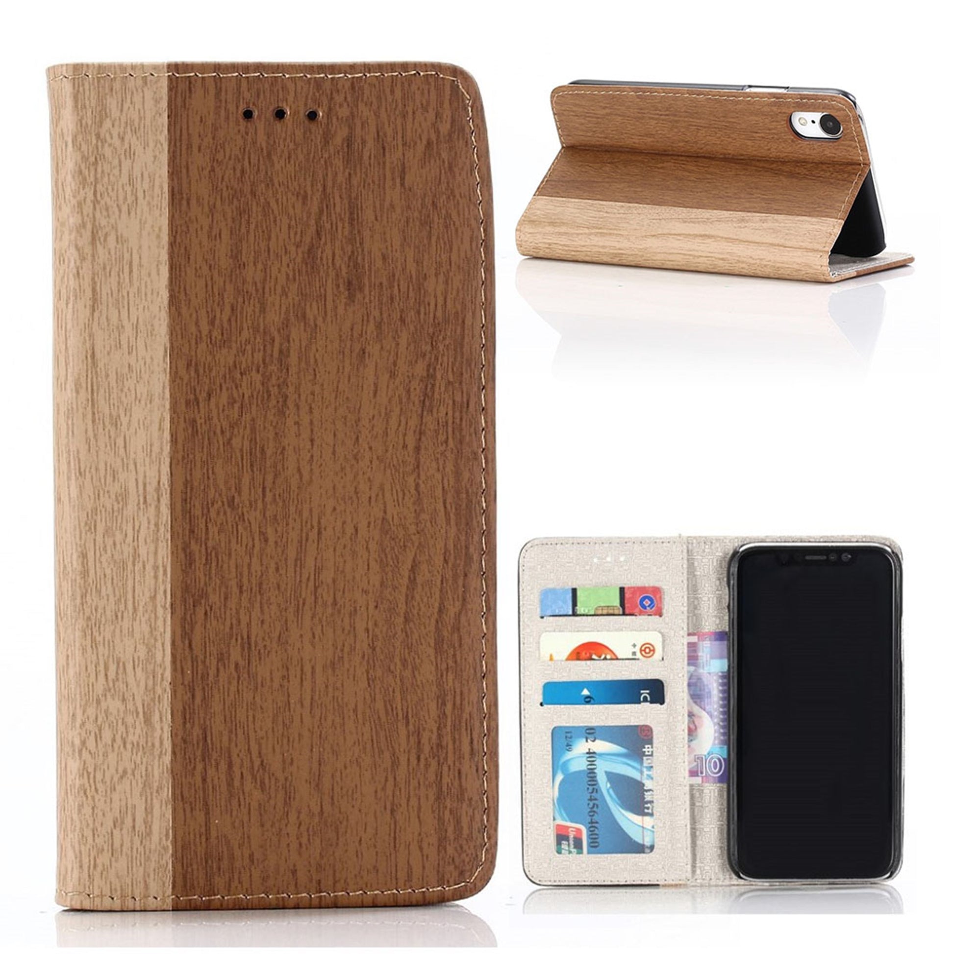 Funda abatible de piel con textura de madera para iPhone Xr - Marrón