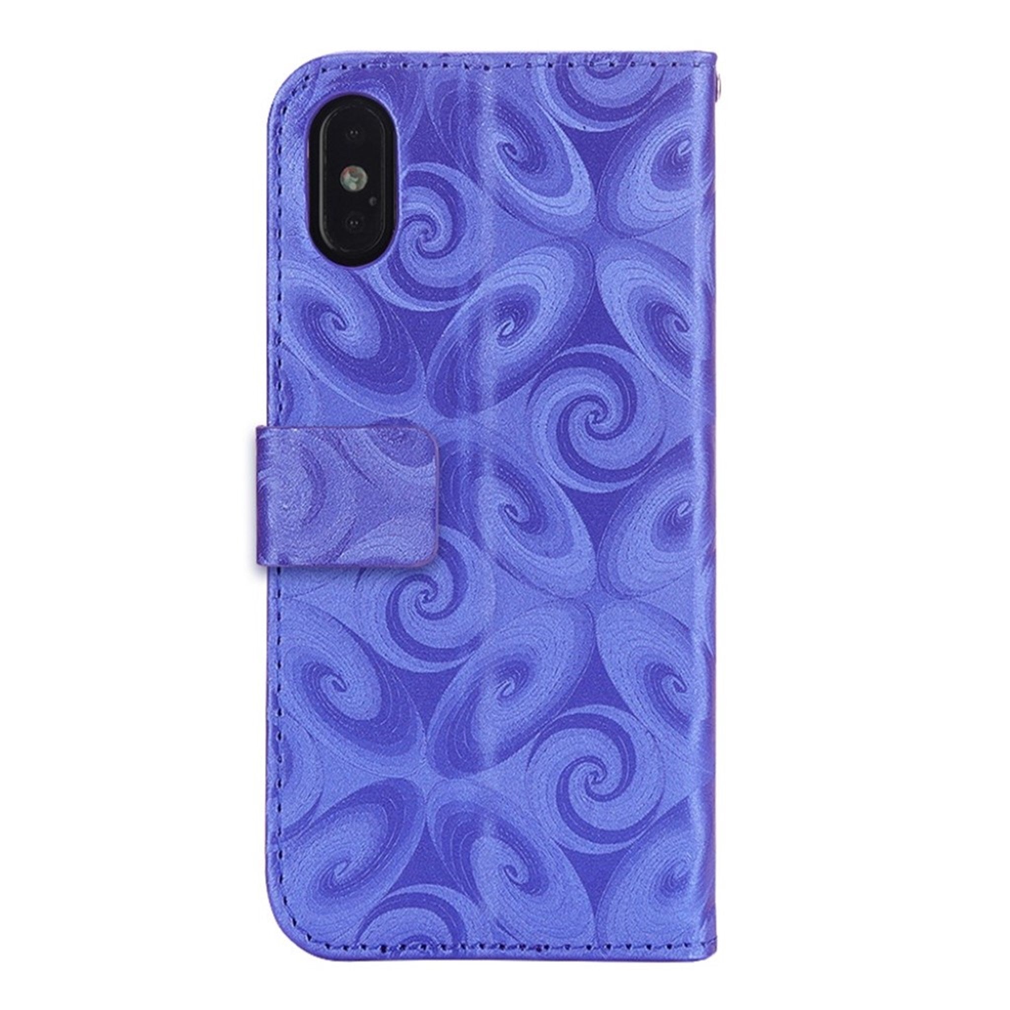 Funda abatible de piel con textura espiral y diseño de copa de vino para iPhone Xs Max - Azul