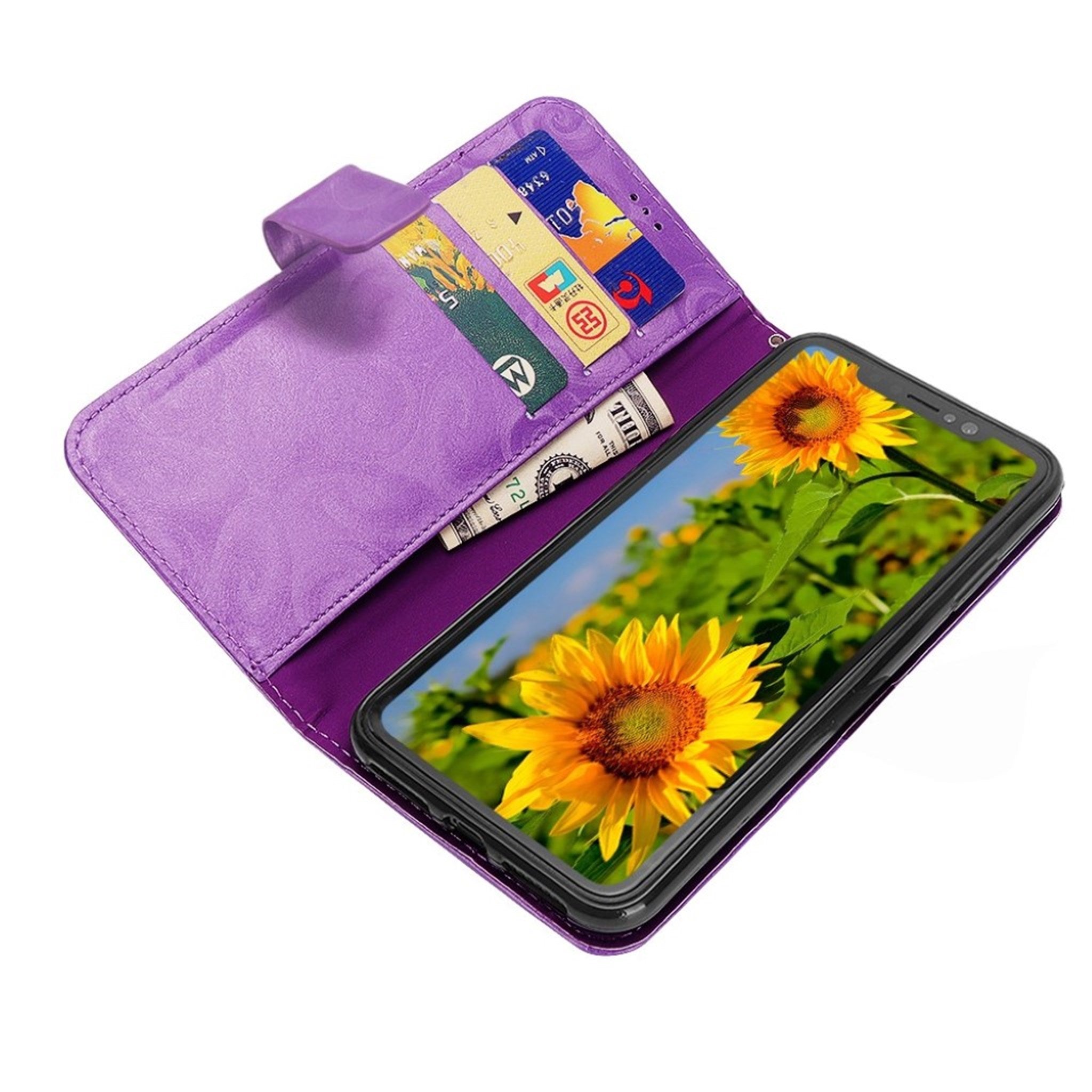 Funda abatible de piel con textura espiral y diseño de copa de vino para iPhone Xs Max - Morado