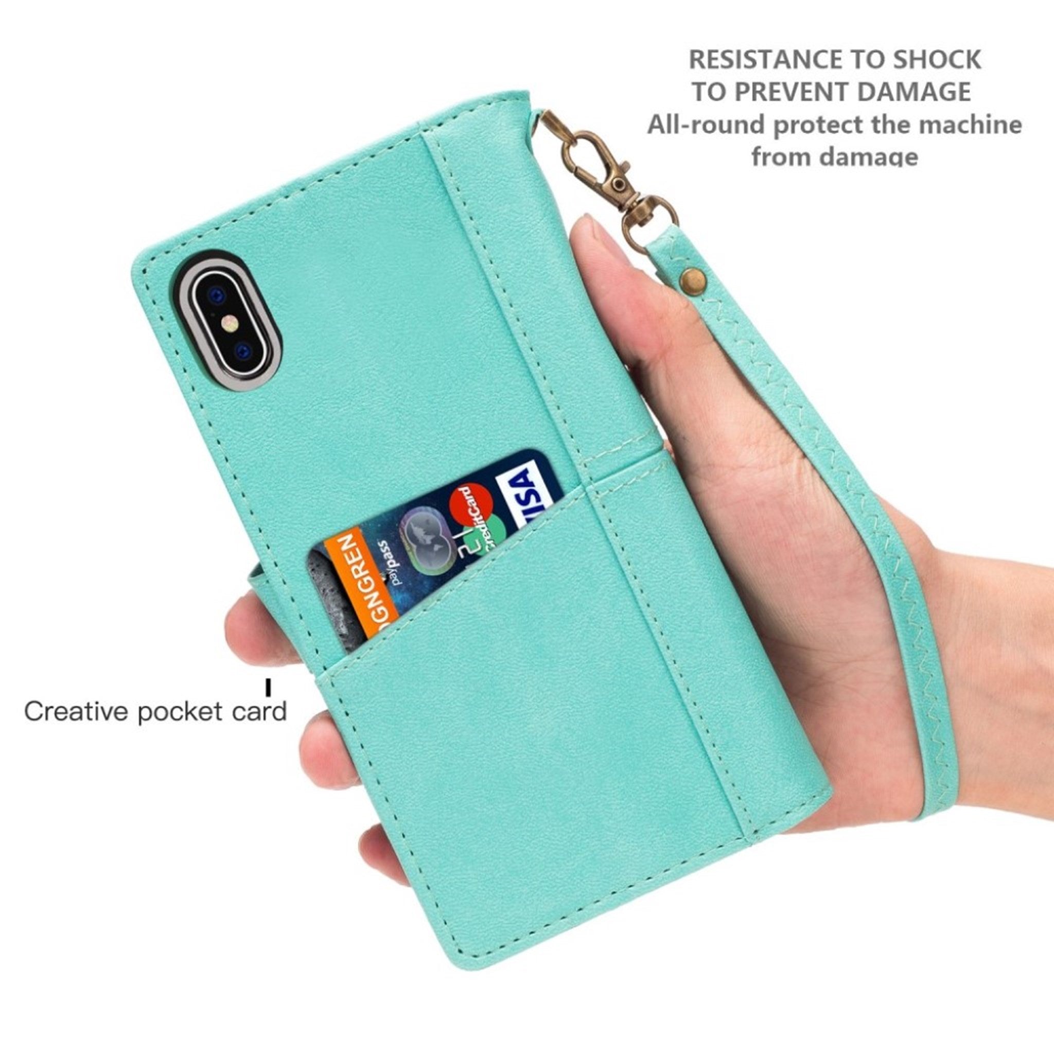 Funda abatible de piel estilo retro para iPhone Xs Max - Cian