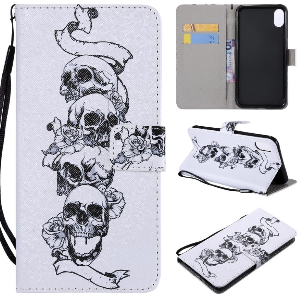 Funda abatible magnética de piel con estampado para el iPhone Xs Max - Calavera Y Flores