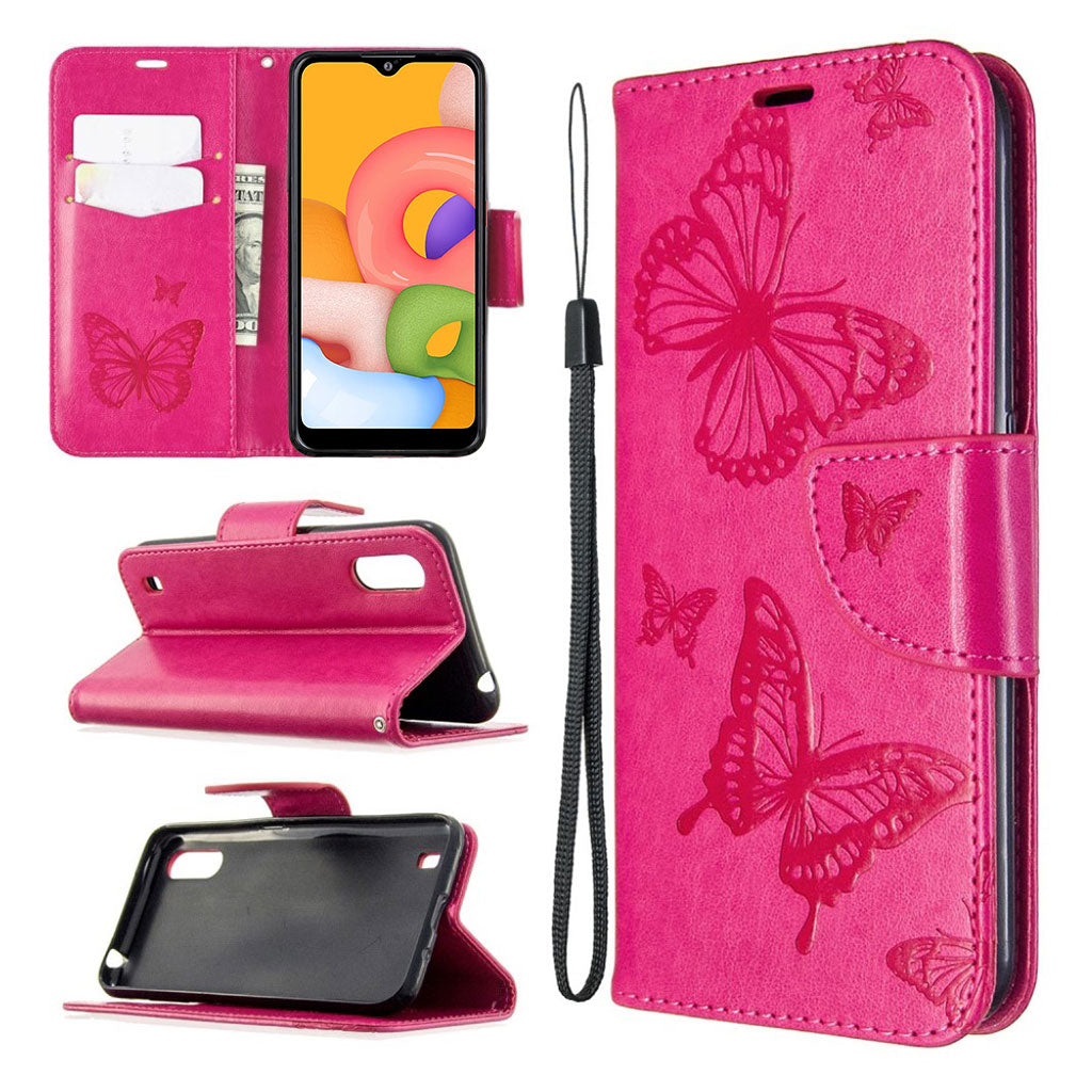 Funda abatible mariposa Samsung Galaxy A01 - Rosa