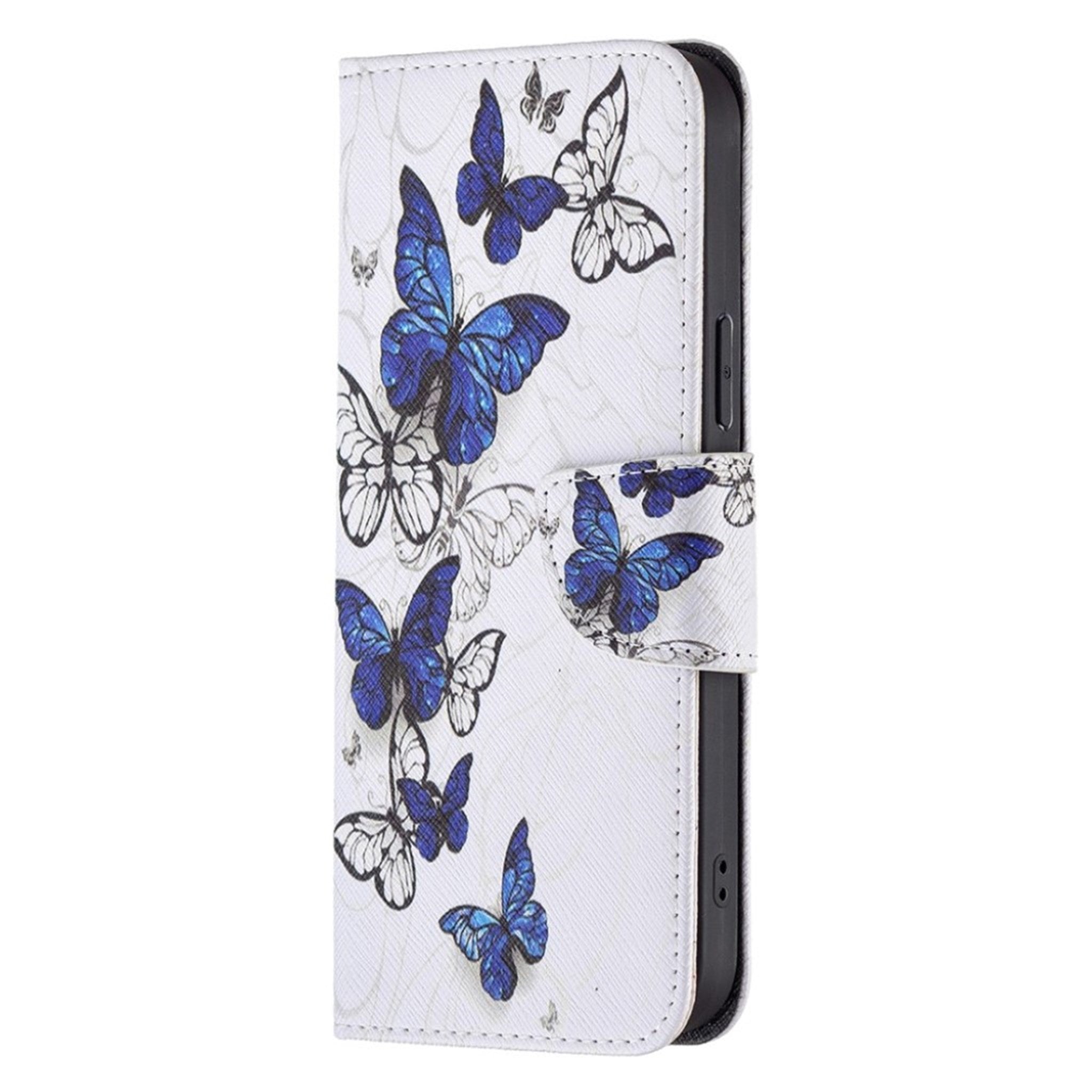 Funda abatible Wonderland para iPhone 13 Pro Max - Mariposas Azules / Blancas