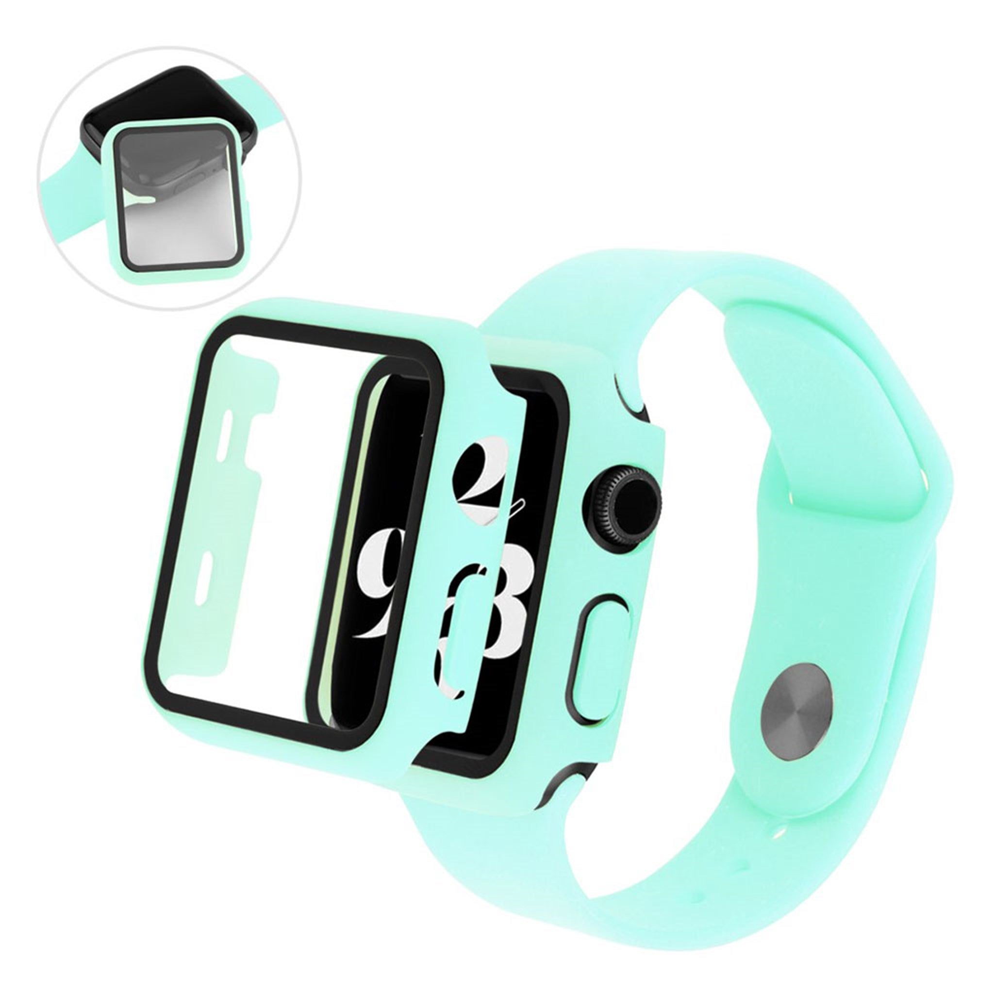 Funda Apple Watch Series 6 / 5 44mm con cristal templado + correa de reloj - Cian
