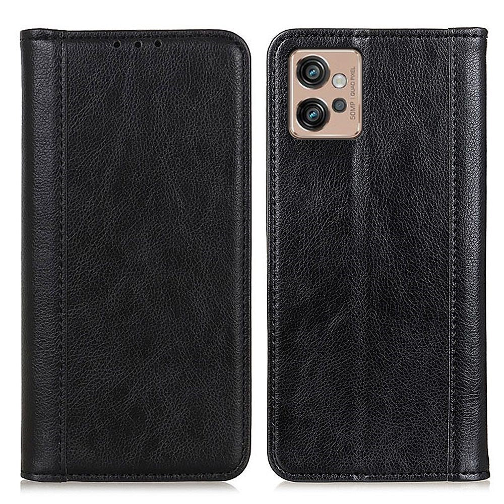 Funda de cuero auténtico con cierre magnético para Motorola Moto G32 - Negro