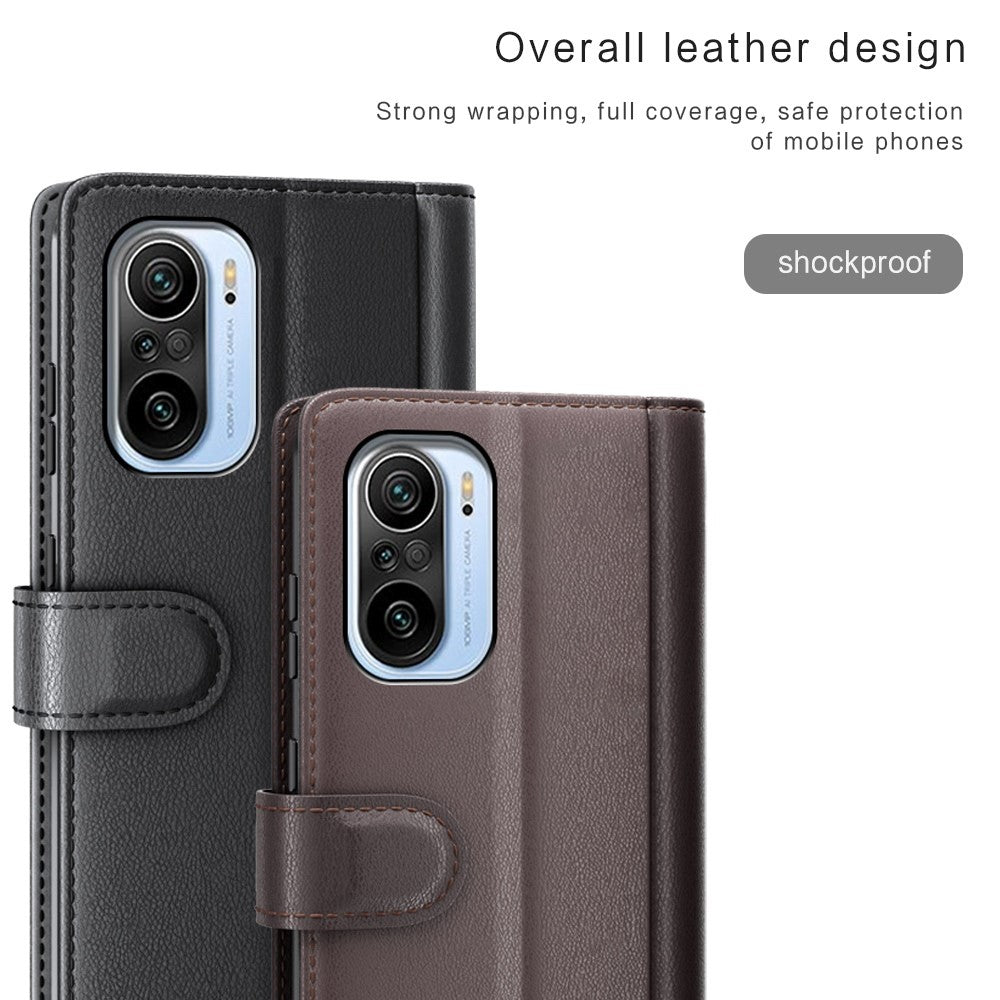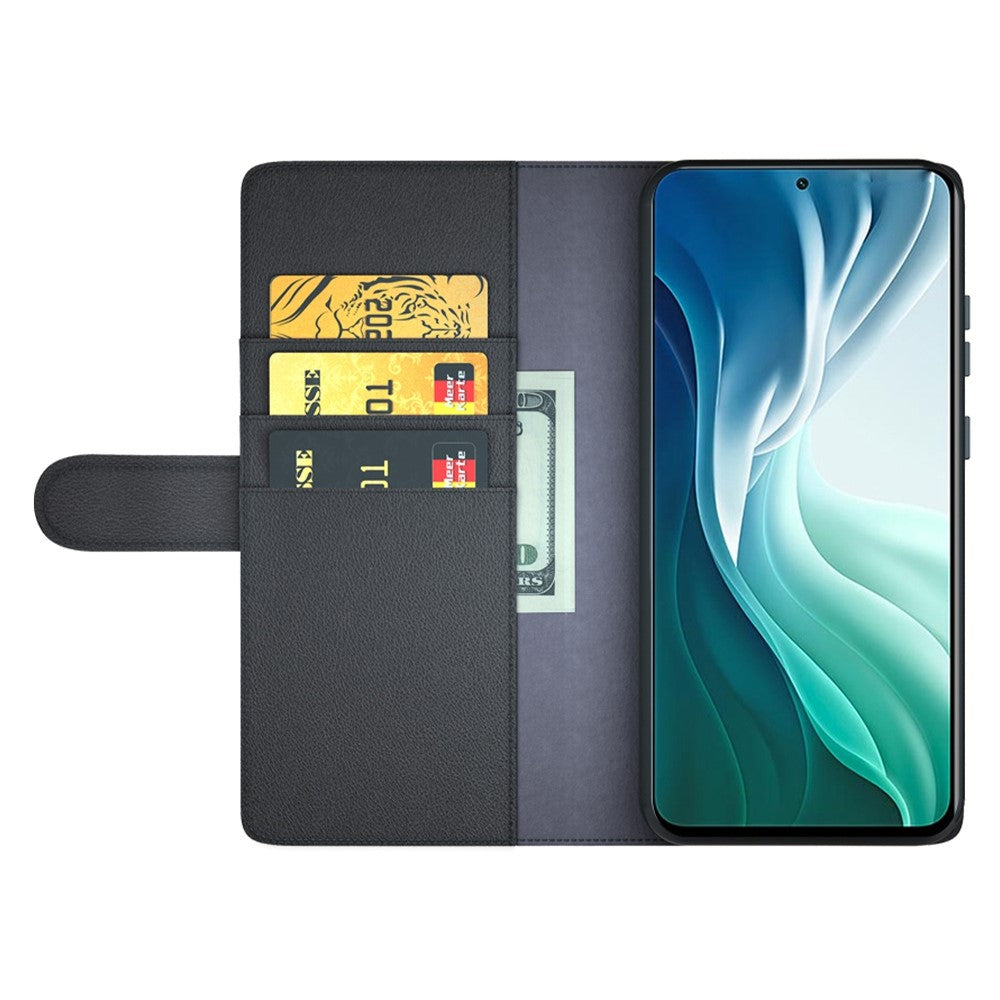 Funda de cuero auténtico con ranuras para tarjetas de crédito para Xiaomi Mi 11i / Poco F3 / K40 - Negro