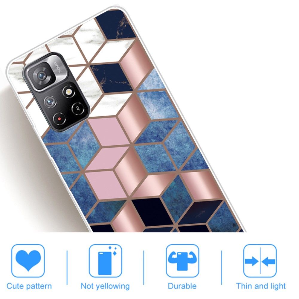 Funda de mármol Xiaomi Redmi Note 11 Pro Plus 5G - Cubo Azul / Dorado