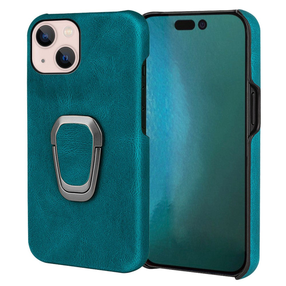 Funda de piel antichoque con soporte ovalado para iPhone 14 - Cian