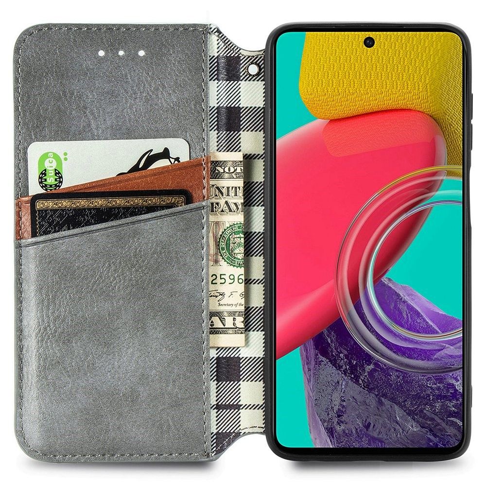 Funda de piel con una elegante impresión de rombos para Samsung Galaxy M33 5G - Gris
