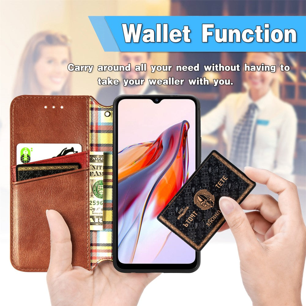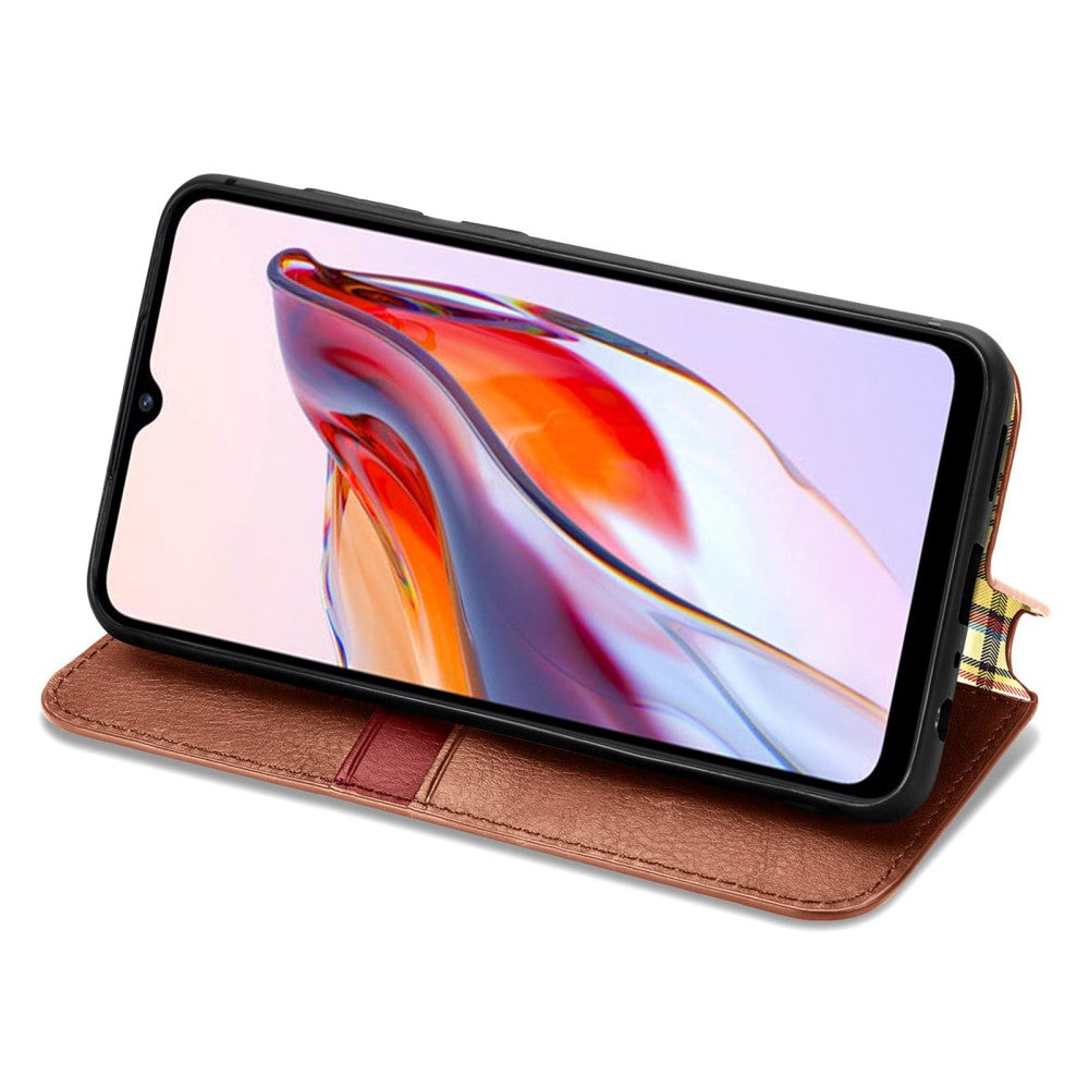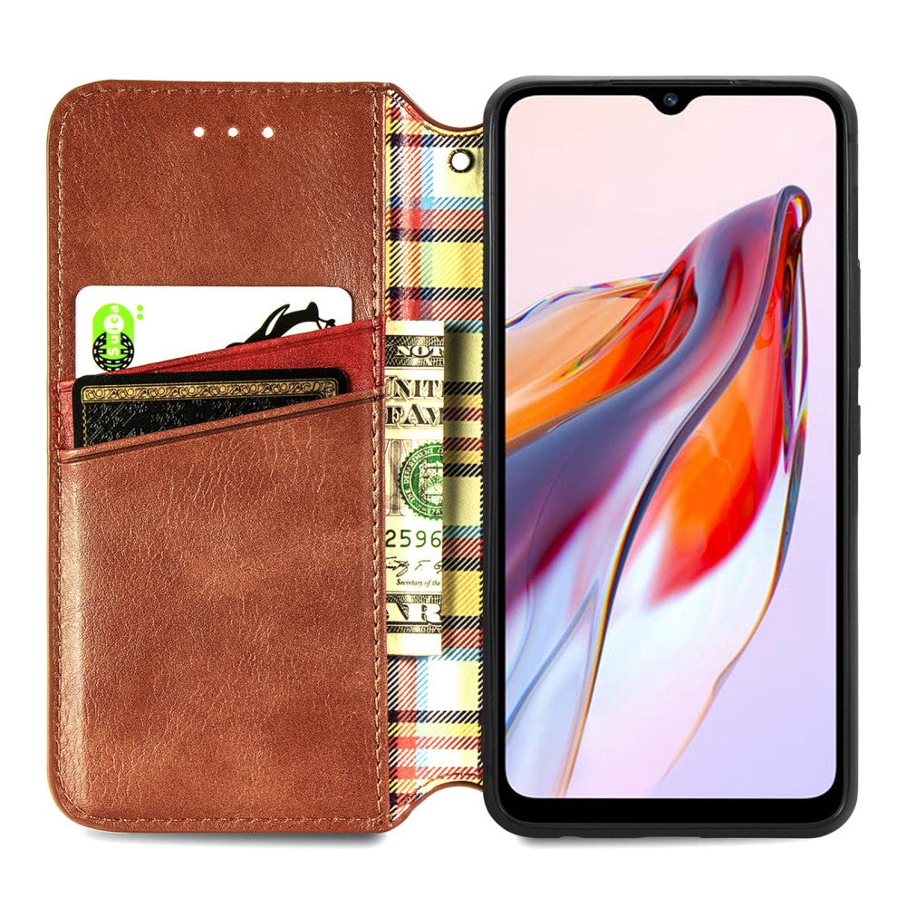 Funda de piel con una elegante impresión de rombos para Xiaomi Redmi 12C / 11A - Marrón