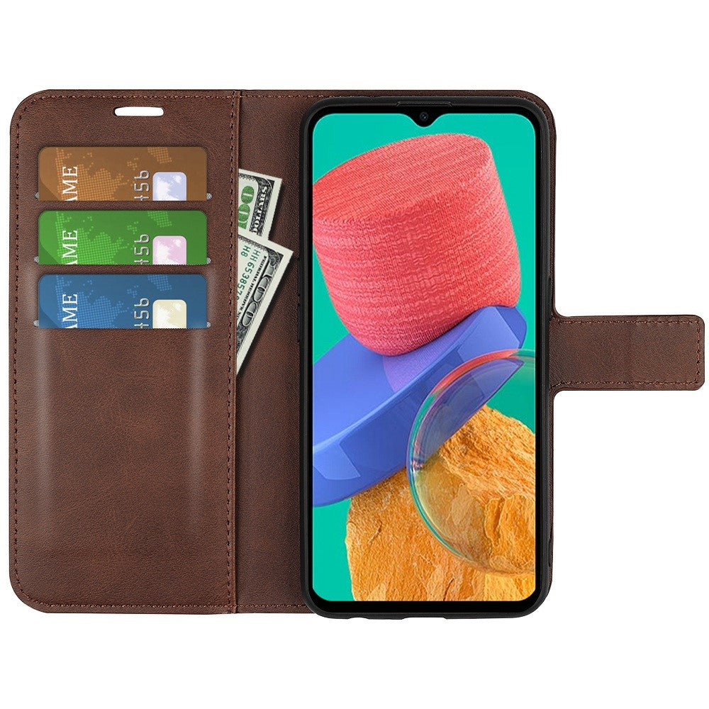 Funda de piel estilo cartera para Samsung Galaxy M33 5G - Marrón