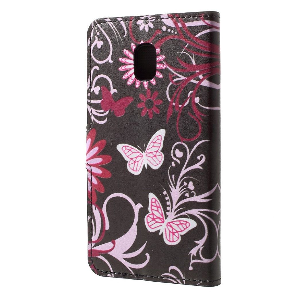 Funda de piel PU estampada Samsung Galaxy J3 (2017) - Mariposa Rosa Y Flor