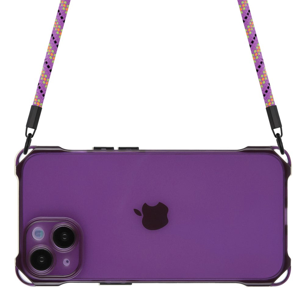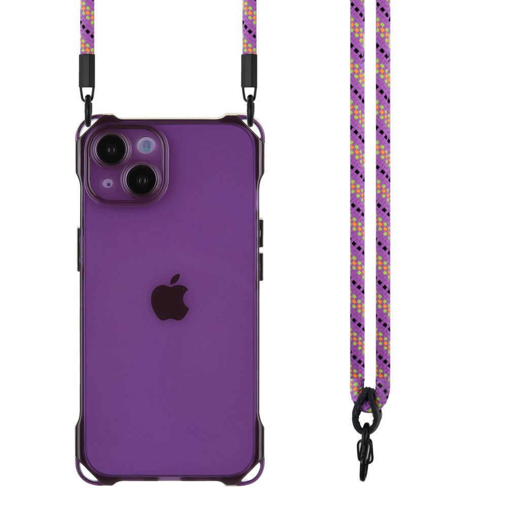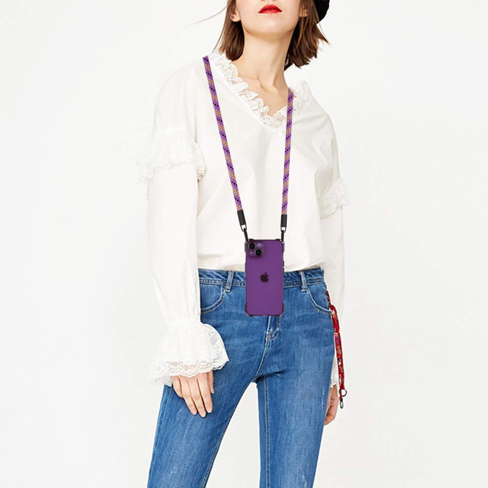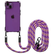 Funda de TPU transparente para iPhone 14 con protección contra caídas y cuerda para colgar - Morado