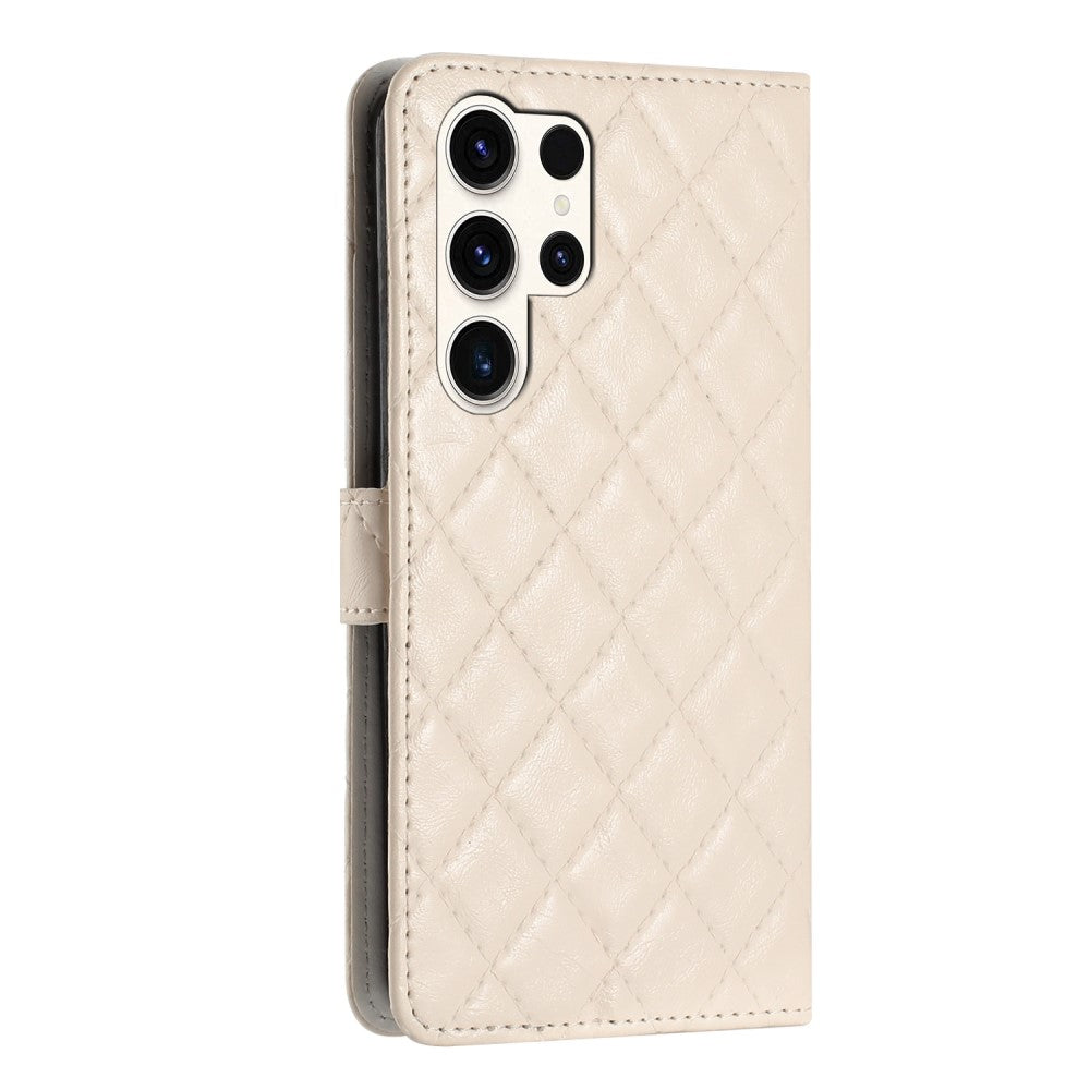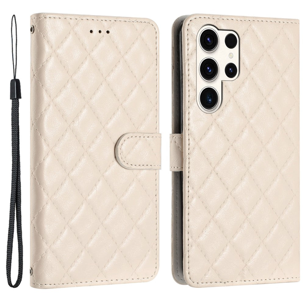 Funda funcional tipo cartera con rombos para Samsung Galaxy S24 Ultra - Beige