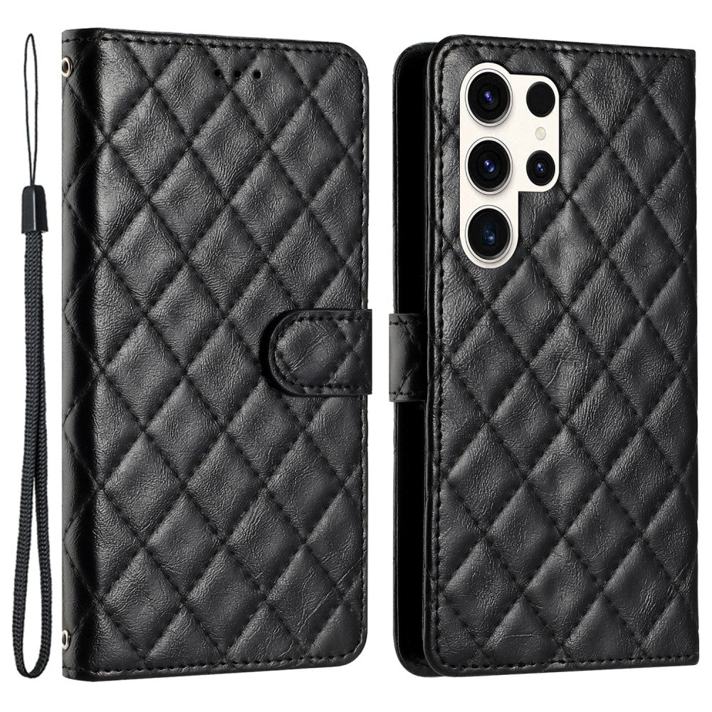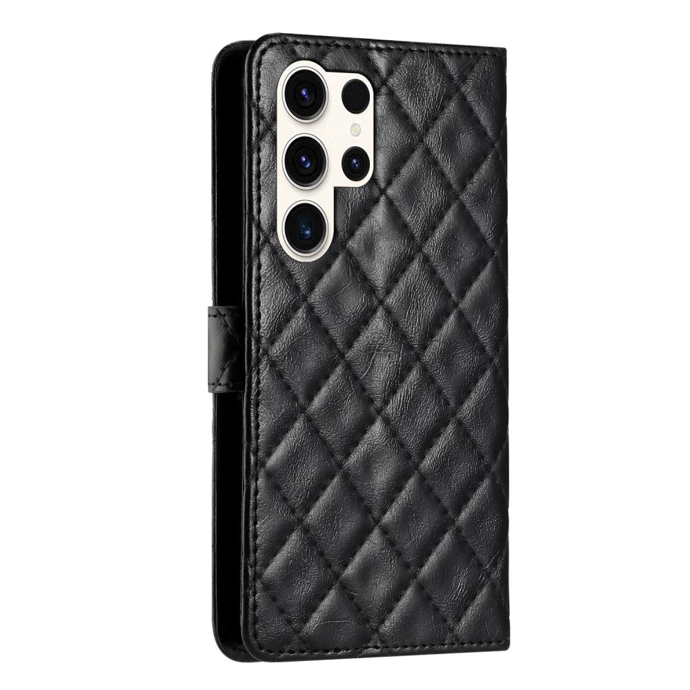Funda funcional tipo cartera con rombos para Samsung Galaxy S24 Ultra - Negro