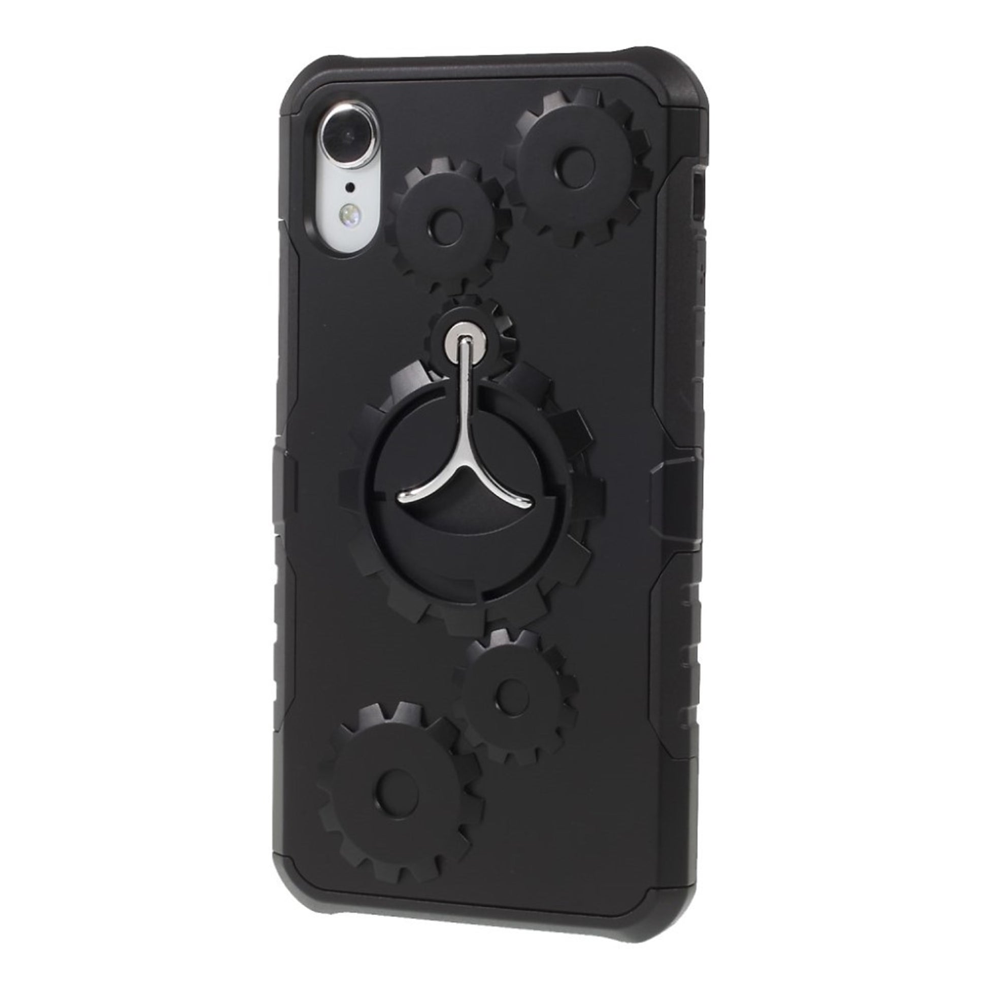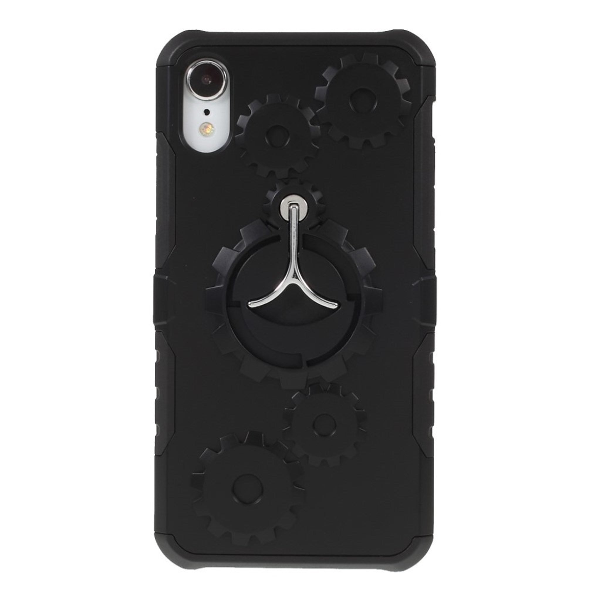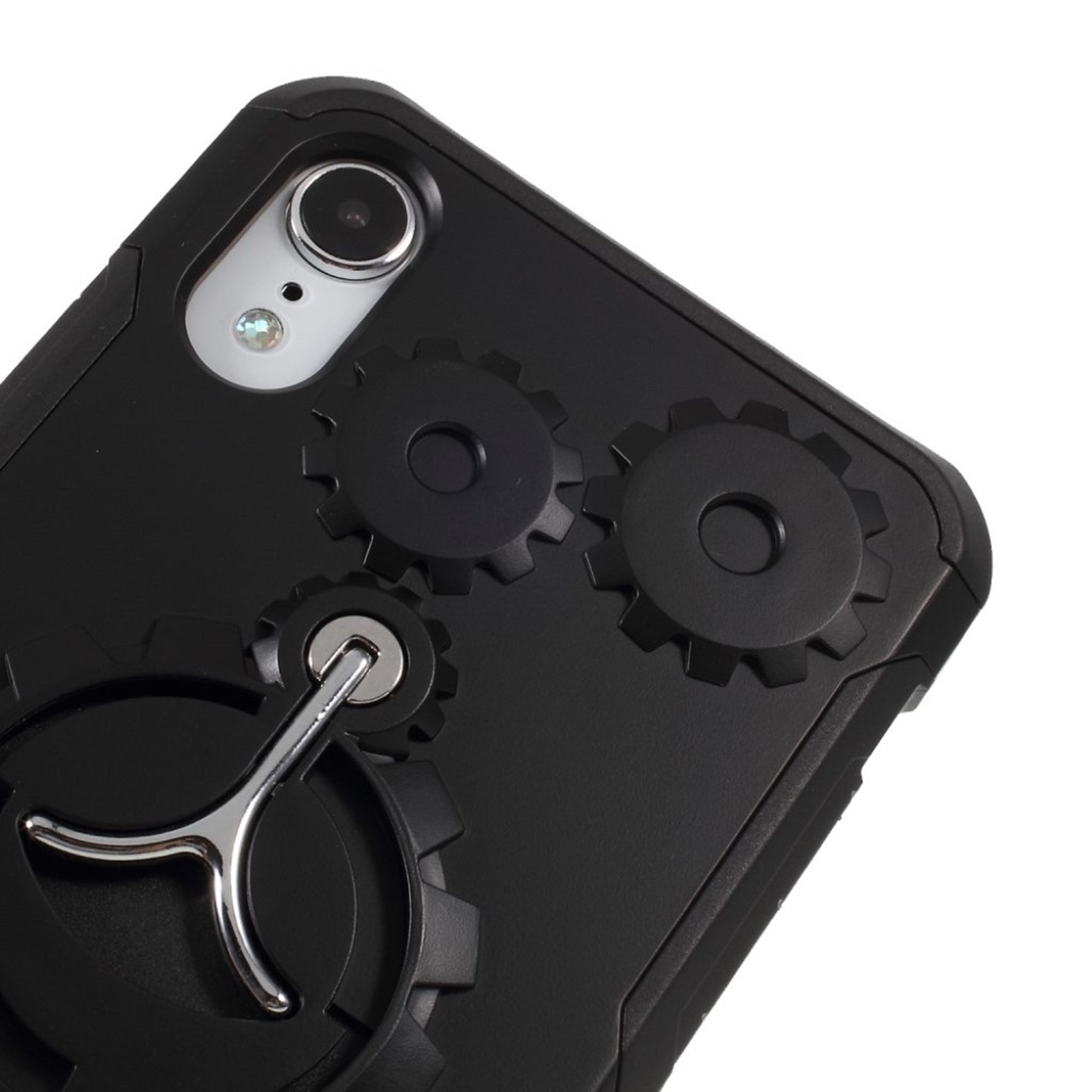 Funda híbrida con pata de cabra y engranaje mecánico para iPhone Xr - Negro