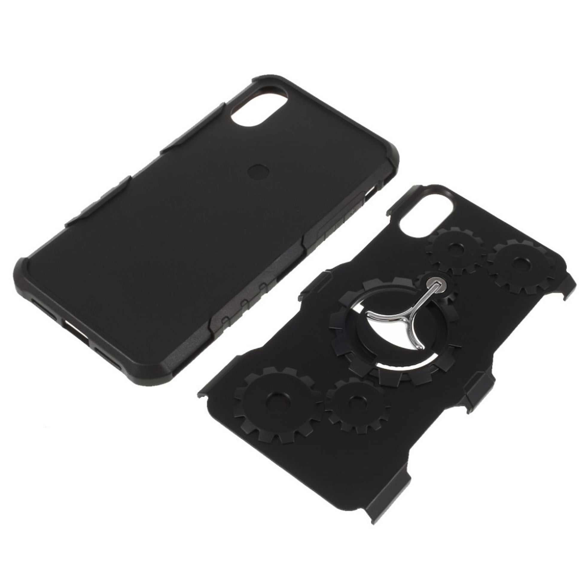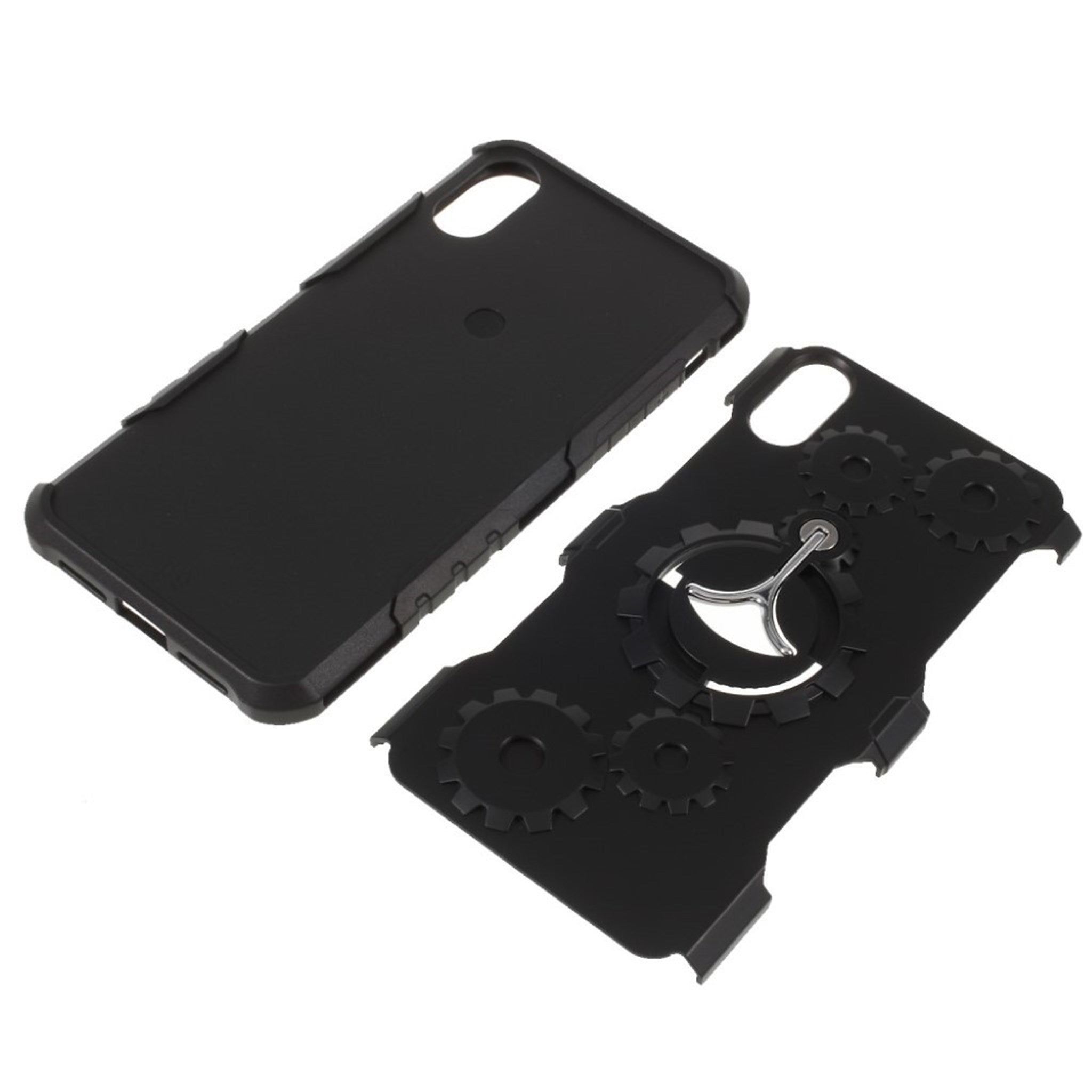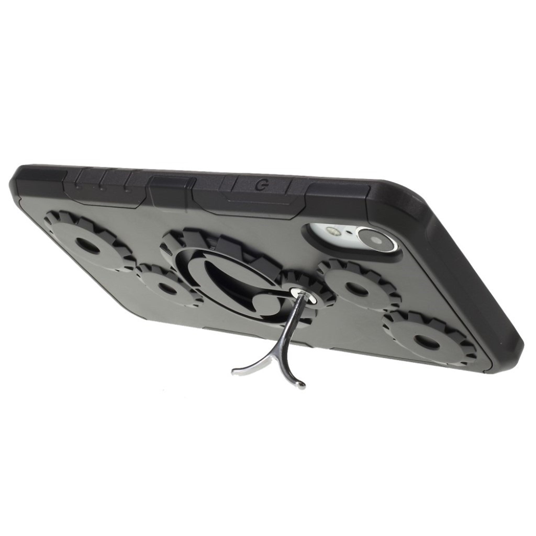 Funda híbrida con pata de cabra y engranaje mecánico para iPhone Xr - Negro
