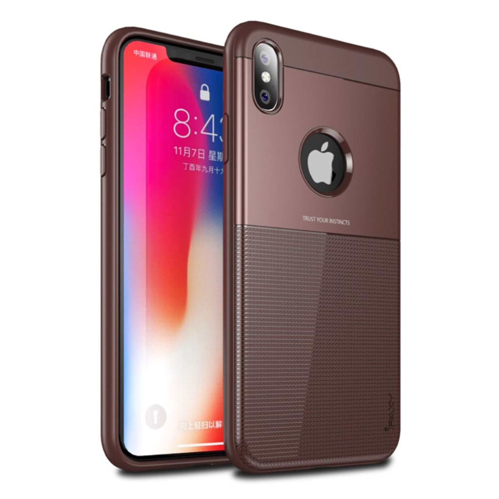 Funda híbrida IPAKY iPhone Xs Max con diseño cuadriculado - Café
